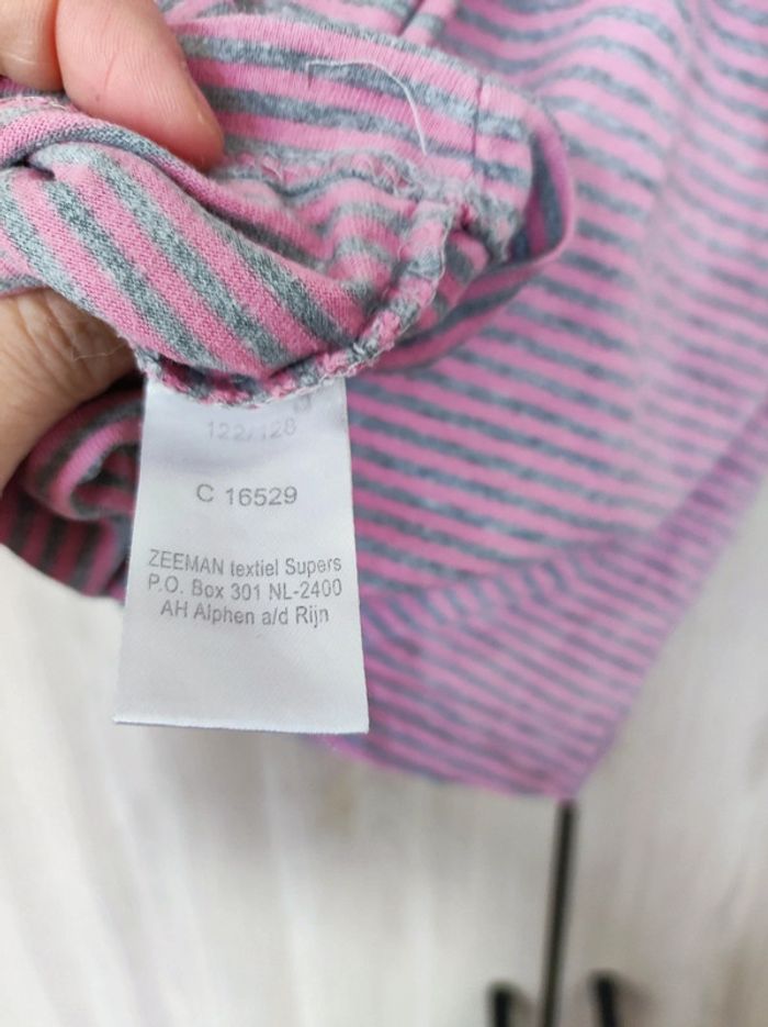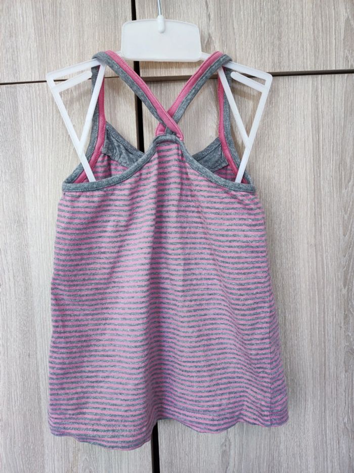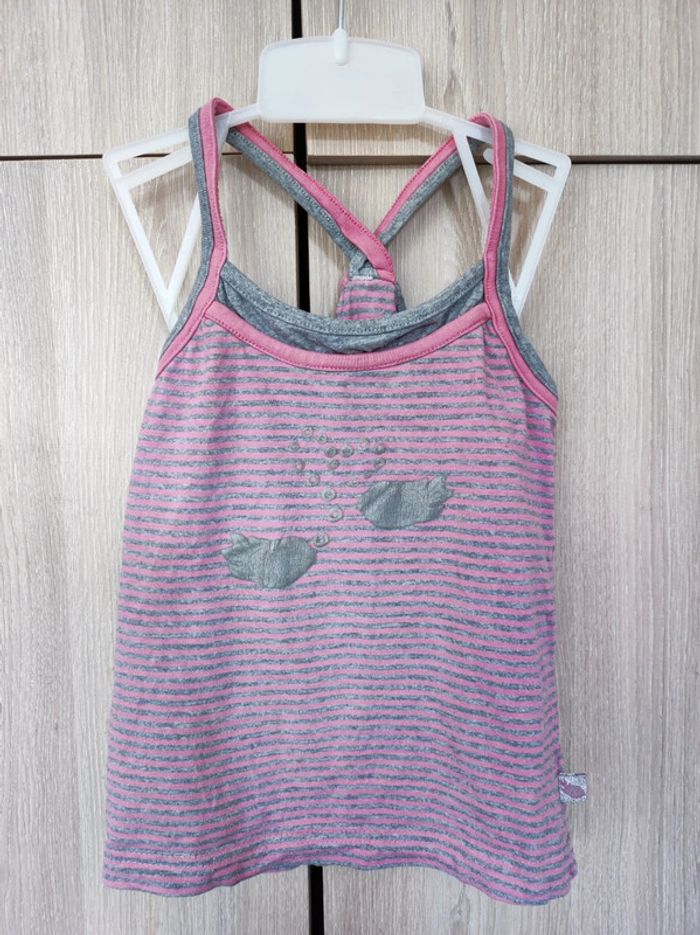 Debardeur sans manches été Marque zeeman Taille 7 - 8 ans / 122 - 128 cm Col rond, dos nageur croisé. Bretelles semi larges. Imprimé rayures gris & rose. Motif transfert 2 poissons avec bulle oxygene. 100 % coton Parfait état. Transfert légèrement craquelé. #jemholofille7ans #jemholofille8ans