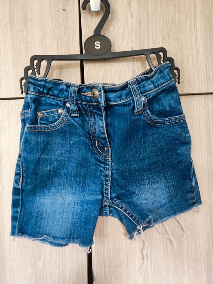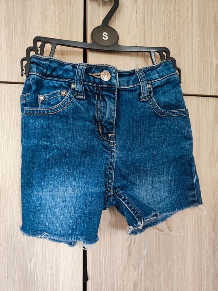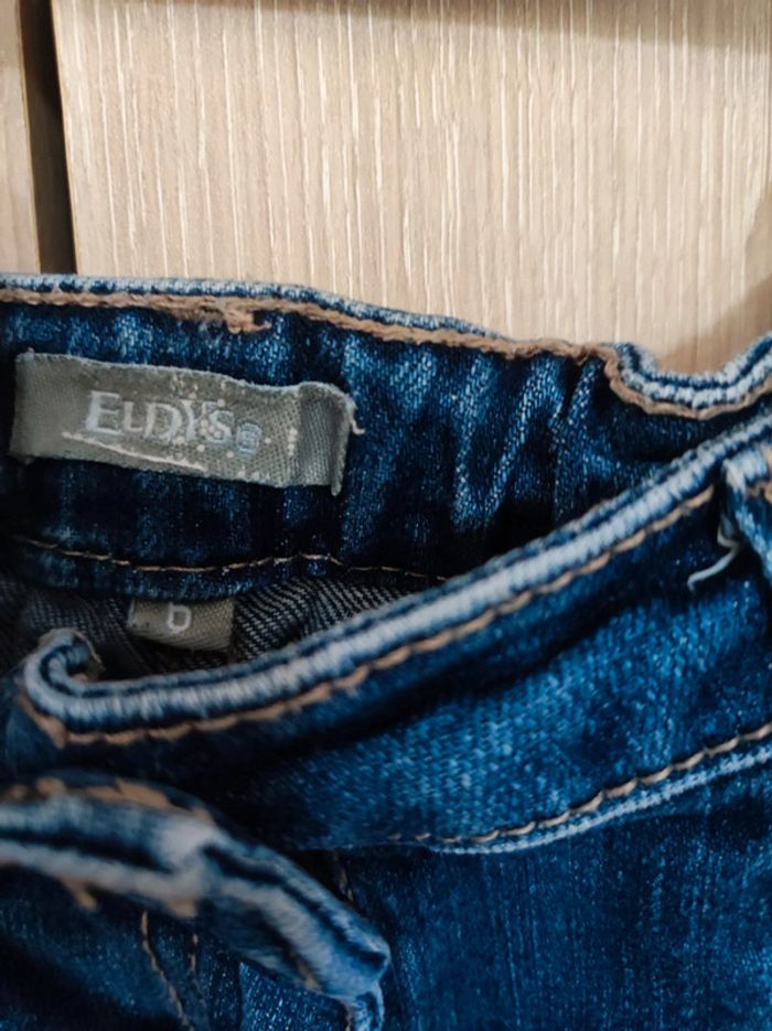 Short été/ estival Marque eldys Taille 6 ans Modele petit short en jean bleu. Bas avec franges effet effiloché. Poches avant et arrière/ passants ceinture Fermeture eclair metal . Petites pièces metal avec coeur poches arrières avec motifs couture. 99 % coton / 1 % elasthanne Parfait état. #jemholofille6ans