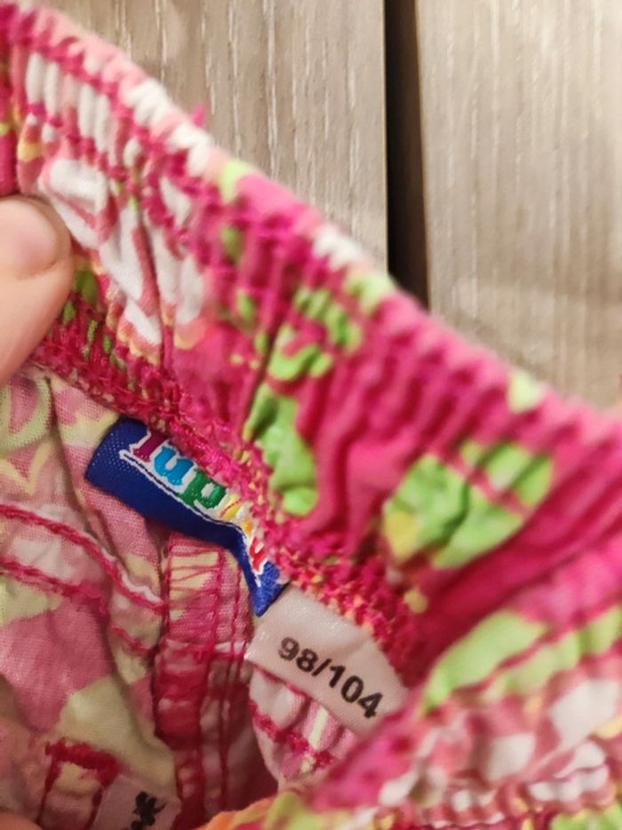 Short été/ estival Marque Lupilu Taille 98 / 104 cm : de 2 a 4 ans. Modèle rose imprimé fleurs rose orange avec tiges vertes fluo Taille élastique. A enfiler Fausse poche et fermeture avant . Poches arrières veritable Etiquette marque coupée #jemholofille2ans #jemholofille3ans #jemholofille4ans