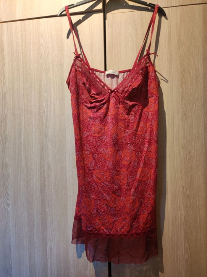 Nuisette Marque etam Taille 38 ( manque étiquette) Couleurs rose fuschia et orange . Imprimé fleuri. Balconnet et bas de la nuisette en dentelle. Flot fuschia au centre. Bretelles réglables. Très bon état. Comme neuf Pour voir les autres articles de mon dressing dans cette même taille : #jemholofemme38