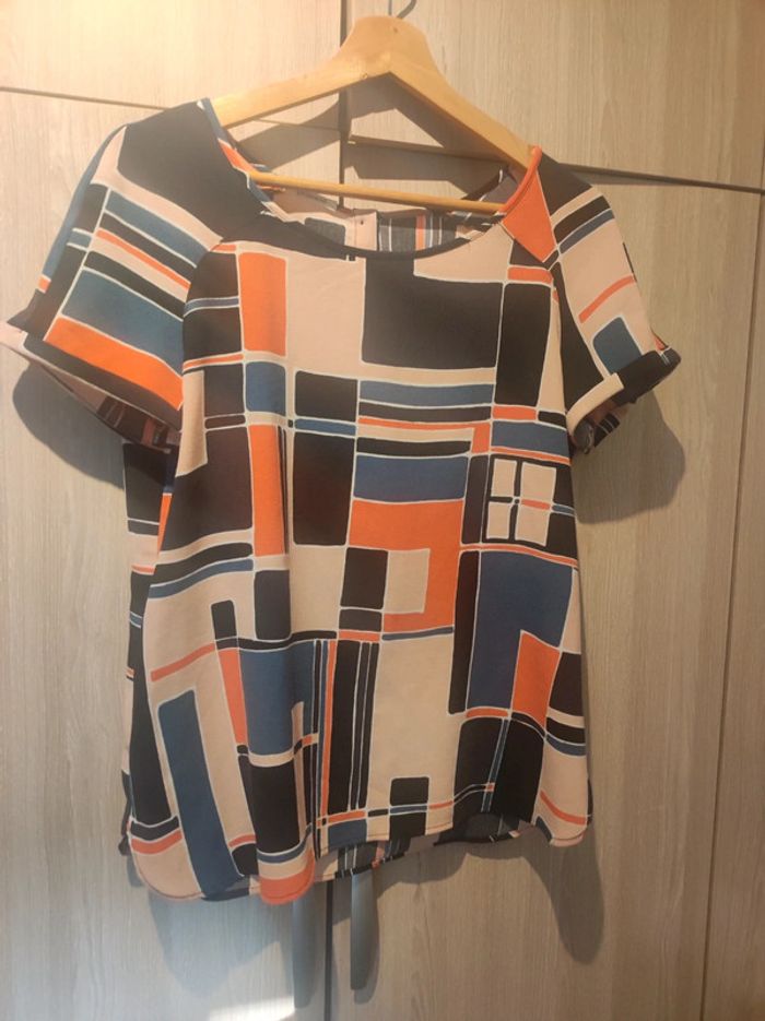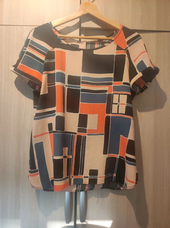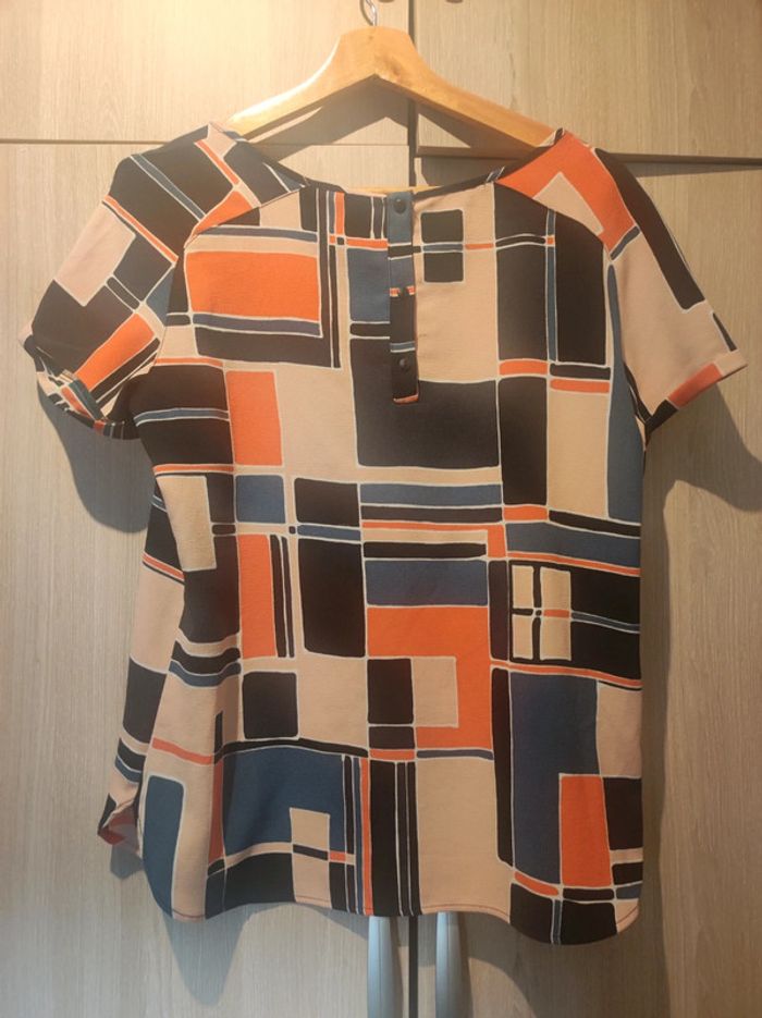 shirt Marque Promod Taille 38-40 (m) Imprimés avec motifs géométriques style rétro / vintage années 60 / 70. Col rond, petites manches. Petits boutons déco au dos en haut. Fentes arrondies de chaque côté. Couleurs orange foncé , bleu canard, rose pâle et noir. matière synthétique. Parfait etat , comme neuf. Manque les étiquettes taille et matière. Pour voir les autres articles de mon dressing dans cette même taille : #jemholofemme38 #jemholofemme40