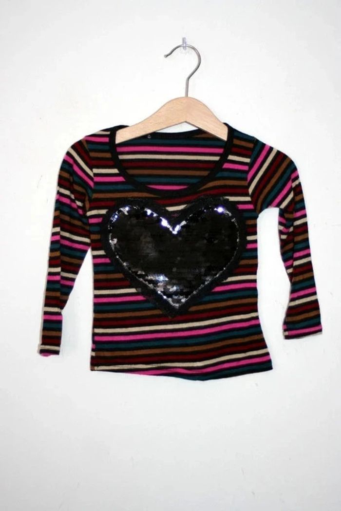 Tee shirt manches longues cœur en sequins noirs 2a - photo numéro 1