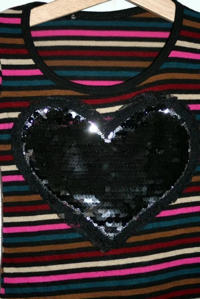 Tee shirt manches longues cœur en sequins noirs 2a - photo numéro 3