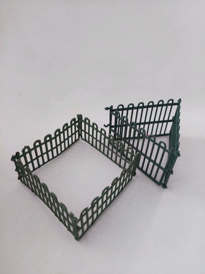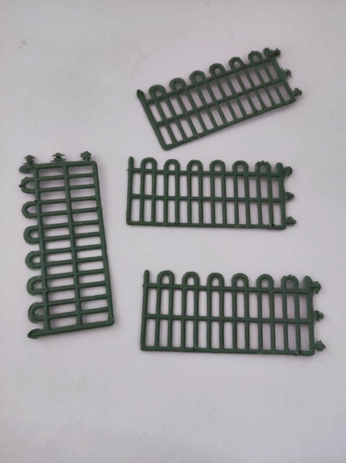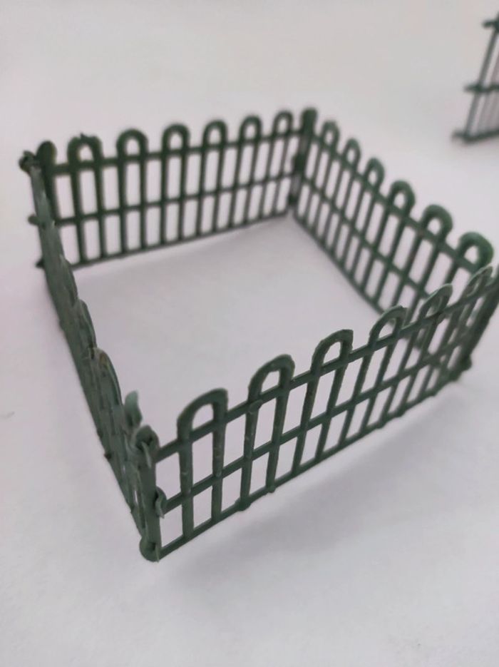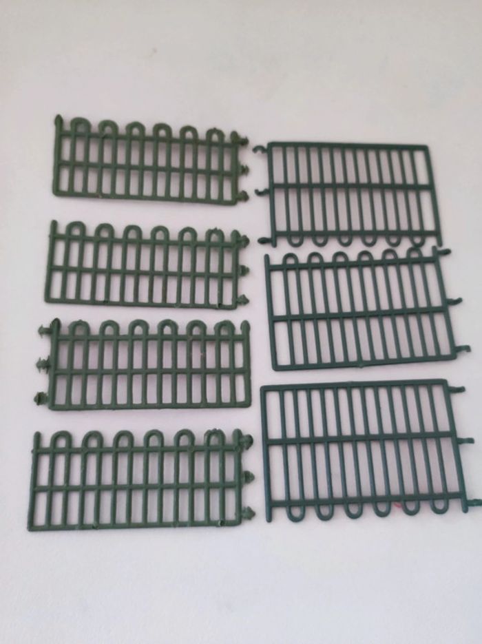 Lot de grilles / grillages souple vert Permet de construire des enclos pour les animaux 4 grilles de 3,5 cm de hauteur x 7,5 cm de longueur 3 grilles de 5 cm de hauteur x 7,5 cm de longueur. Parfait etat. En plastique souple . Modele vintage annees 80. S'emboitent.