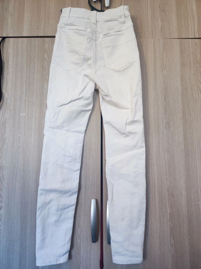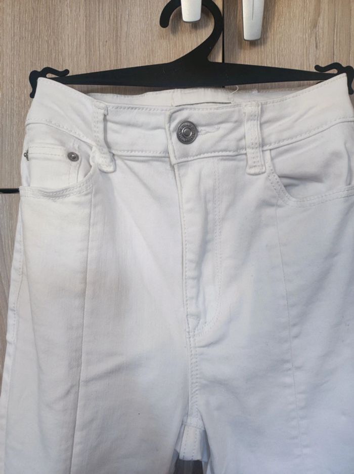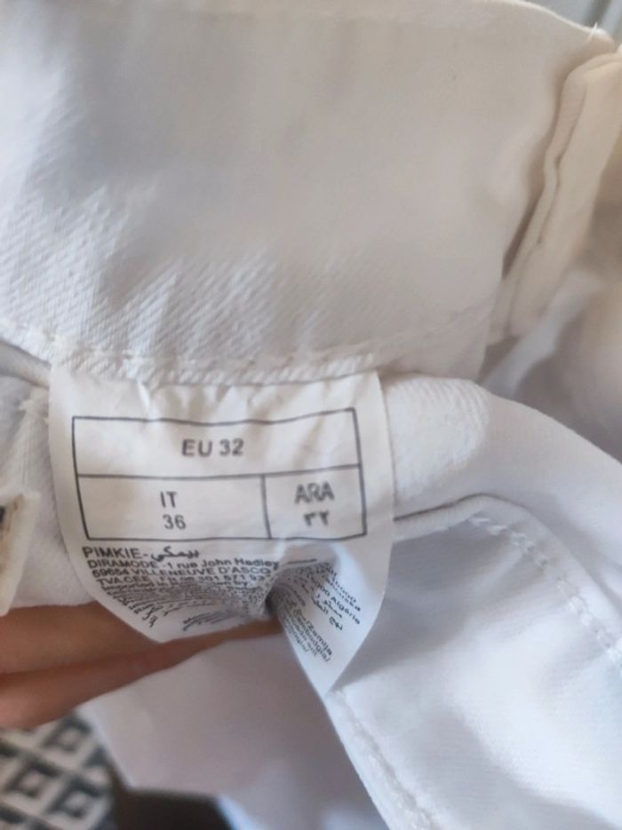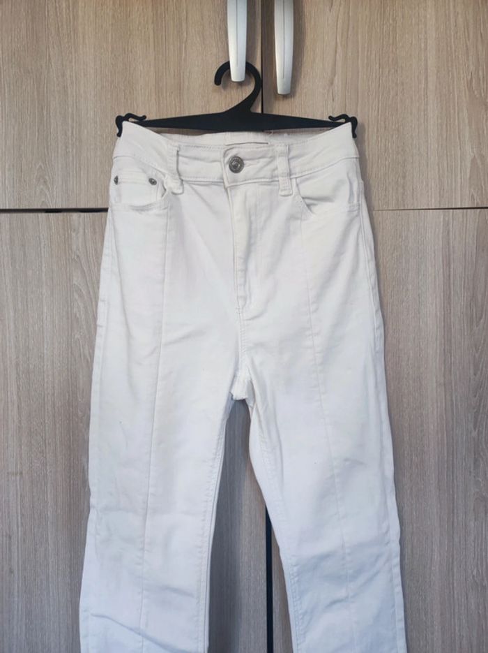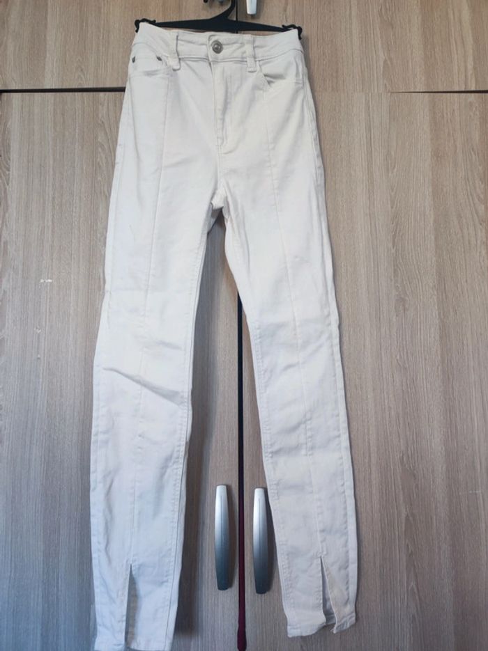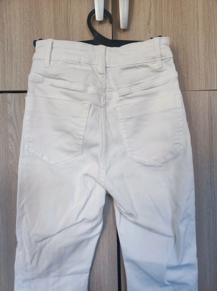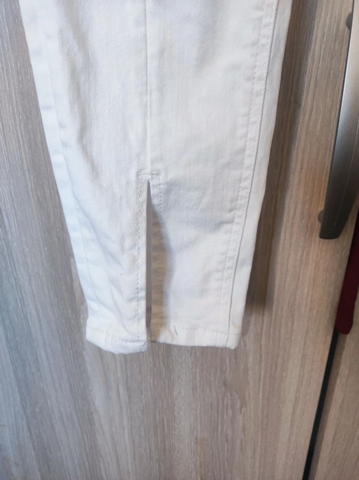 Jean blanc (ideal pour les fêtes) Taille europe 32 (equivalent France 34) Poches avant et arriere avec passants pour ceinture. Fermeture eclair et boutons metal argent. Coupe slim avec petites fentes en has des pates. Parfait etat, comme neuf. Pour voir les autres articles de mon dressing dans cette même taille : #jemholofemme34