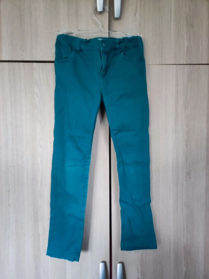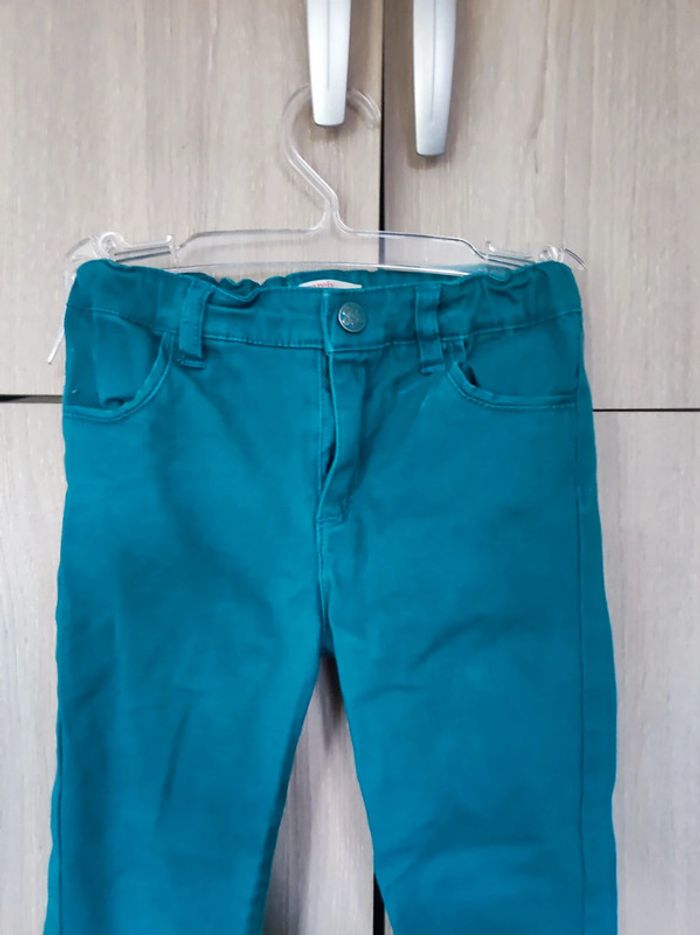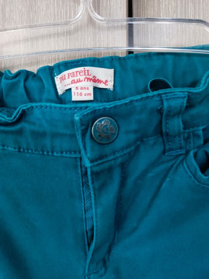 Pantalon Marque Du pareil ...au même Taille 6 ans / 116 cm Coupe slim. Poches avant et arriere. Superbe couleurs bleu canard. Passant pour ceinrure. Fermeture metal argent avec bouton metal argent et bleu. Parfait etat. #jemholofille6ans