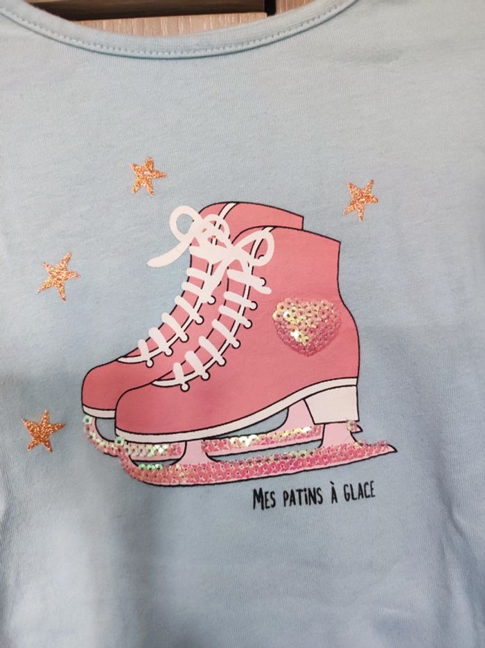 T shirt ml  bleu patins a glace / in extenso 4 ans - photo numéro 3