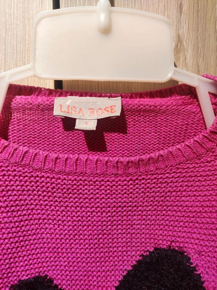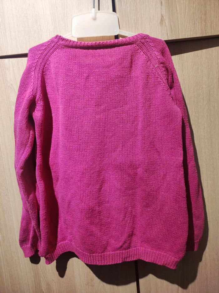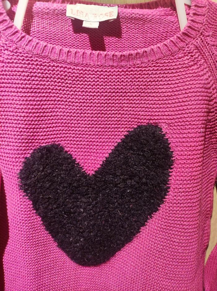 Pull style maille Marque Lisa Rose Couleur rose Taille 6 ans 116 cm Col rond manches longues. Motif coeur en moumoute a l'avant. Parfait état Coton viscose et laine angora. #jemholofille6ans