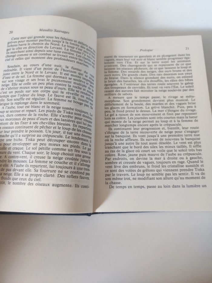Livre roman dramatique Maudits Sauvages de Bernard Clavel Édition Albin Michel pour France Loisirs 1989 Relié et cartonné effet tissus / beau format 13 x 21 cm. Très bon état / tranches simplement jaunies a cause du temps ( le livre a 33 ans) Résumé : Arrivé au terme de sa longue traversée du Royaume du Nord, Bernard Clavel, la nostalgie au coeur, reprend son chemin, une dernière fois dans ces immensités blanches où hurle un vent à nul autre pareil. Le « Nordet » souffle sur ses pages qui chantent en forme d'apothéose et de chute, l'esprit des indiens Wabamahigans, leur résistance face aux bâtisseurs de la Baie James et leur lente agonie sur la terre où les avait menés la légendaire Tiska à la poursuite d'un loup blanc. Seule la mort évitera au chef Mestakoshi de voir, de sa tente traditionnelle, son fils et son arrière-petit-fils parmi les Indiens alignés devant le magasin général déchirant à longueur de jour des billets de bingo. « les maudits sauvages » un des drames les plus poignants des temps moderne