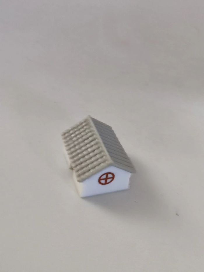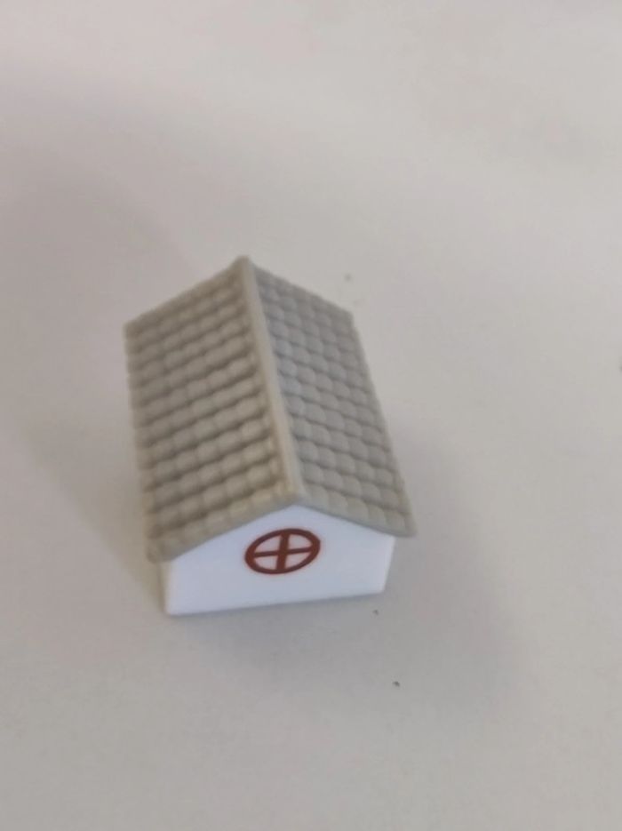 Maison miniature médicale . Blanche avec une toiture grise. Elle présente une croix rouge (ancienne croix médical ). Jouet vintage en plastique dur. Pour collectionneur ou pour qu un enfant puisse l utiliser en jouet. Dimension : 3x2x2,5 cm Parfait état