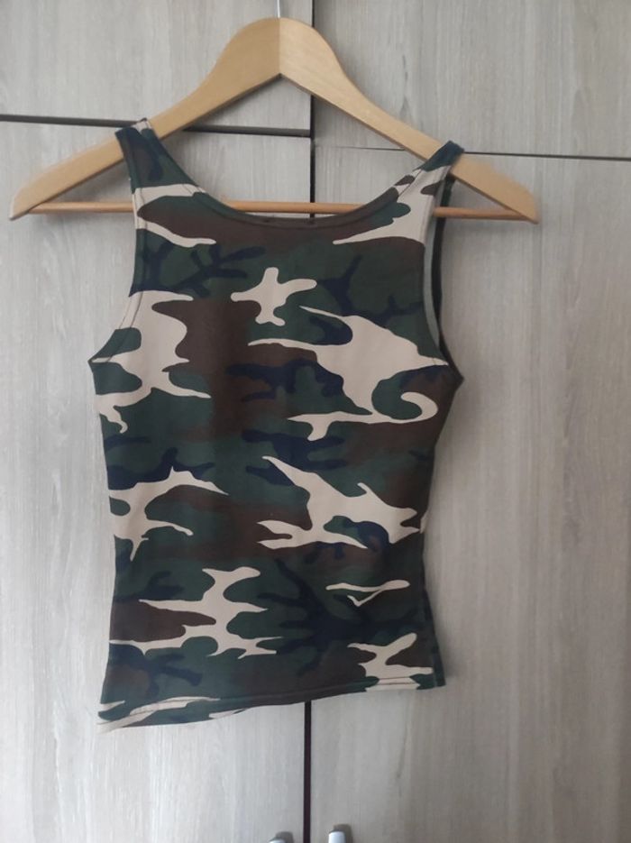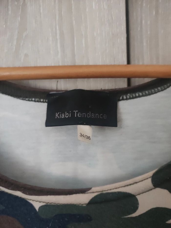 Débardeur Kiabi tendance Taille 34 -36 Motif camouflage /militaire (vert kaki, beige et marron ) Sans manche, moulant. Col rond. Bon état. Quelques imperfections : mini bouloches a raser Pour voir les autres articles de mon dressing dans cette même taille : #jemholofemme34 #jemholofemme36