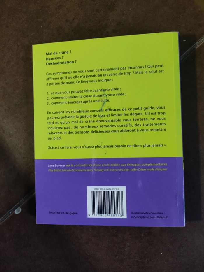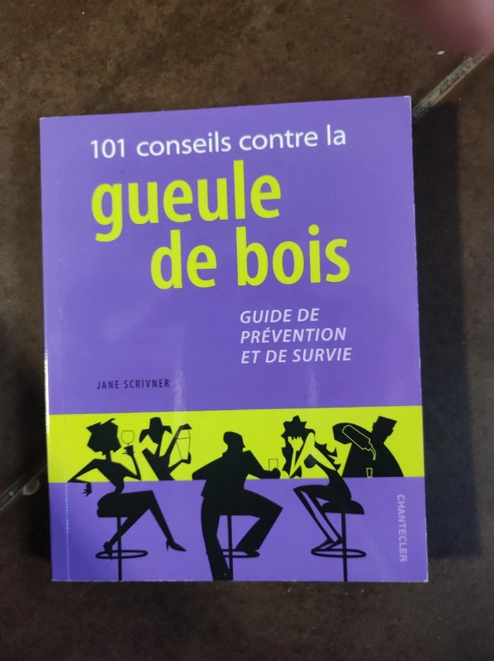 Livre '101 conseils contre la gueule de bois' Guide de prévention et de survie . Par Jane scrivner - édition Chantecler. L écrivaine est la créatrice d'une école en angleterre sur les thérapies alternatives complémentaires. Le livre est dans un etat neuf, ouvert 1 fois. Acheté 24,99 euros. C'est un petit format. (15 x 12 cm)