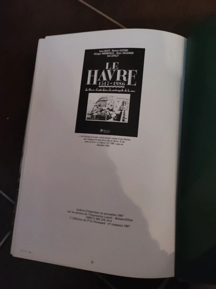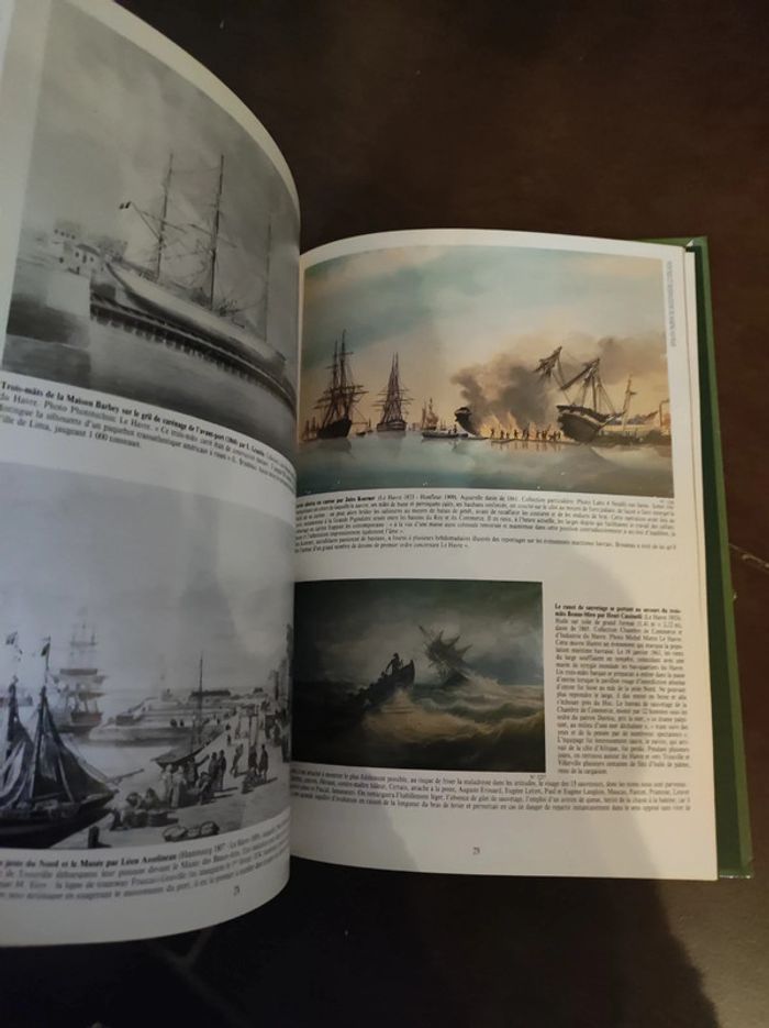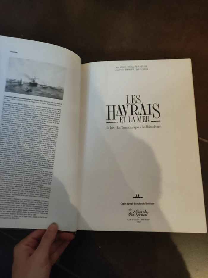Les havrais et la mer, Le port - les transatlantiques - les bains de mers Éditions du Petit Normand 1987 Par le centre havrais de recherche historique . Très beaux livres avec beaucoup de photos et d illustrations (bateaux, marins, plans, baigneurs...) Grand format 30,5 x 21 cm. Couverture rigide. D'occasion, quelques marques d usures sur les coins de la tranche (visible photo ), sinon impeccable..