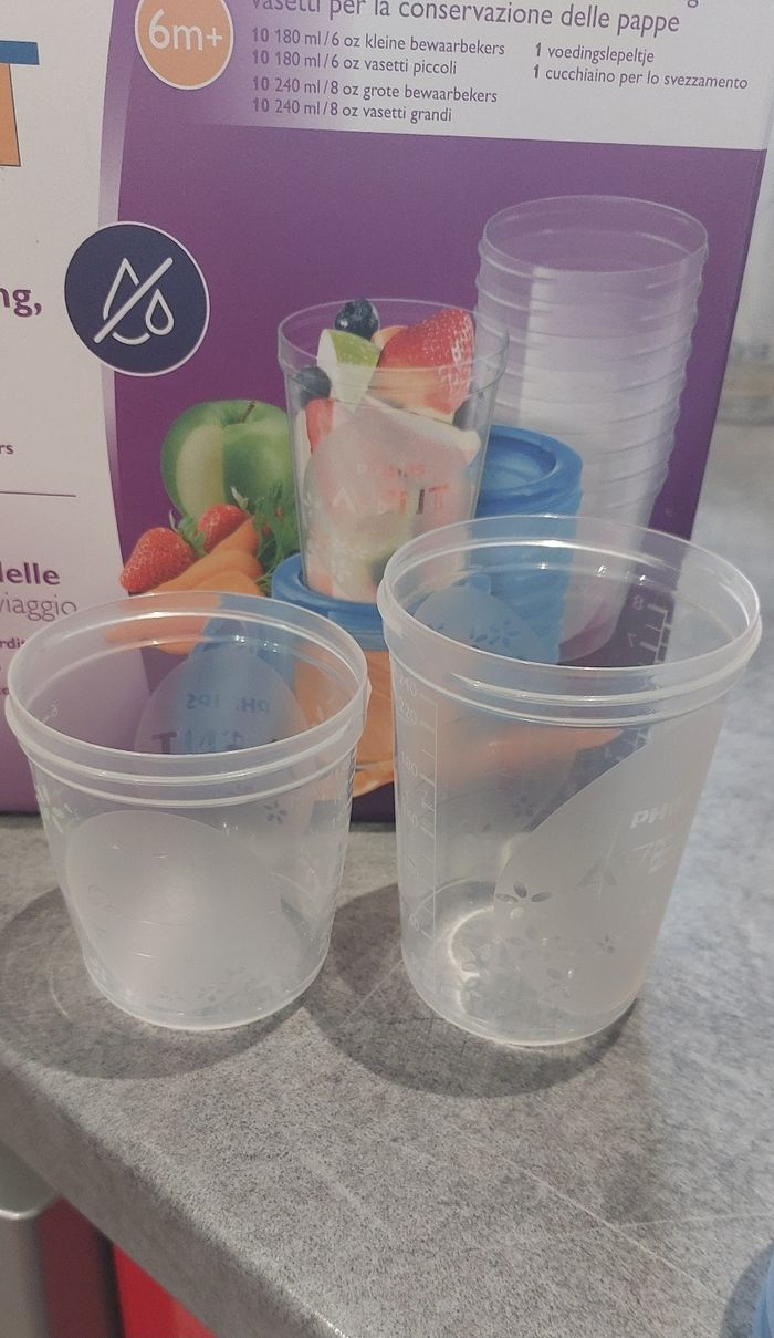 Lot de pots de conservation Avent avec 10 grands pots de 240ml et 15 petits pots de 180ml et 25 couvercles. Il y a 6 grand pots et couvercles neufs, jamais utilisés et le reste utilisé pour mes 2 enfants. Certains couvercles ont les marques de feutre lavable (voir les 2 photos, 1 couvercles neuf et 1 avec traces). Très pratiques pour la conservation du lait maternel, des compotes et repas faits maison ! Ils passent au micro ondes, lave vaisselle.