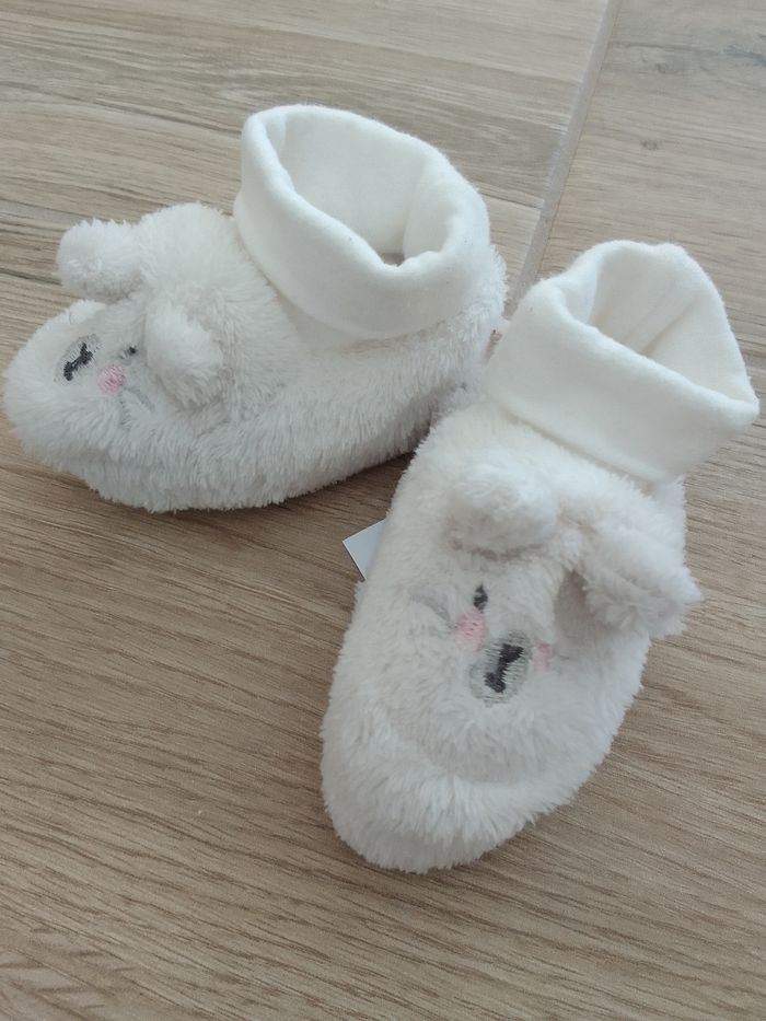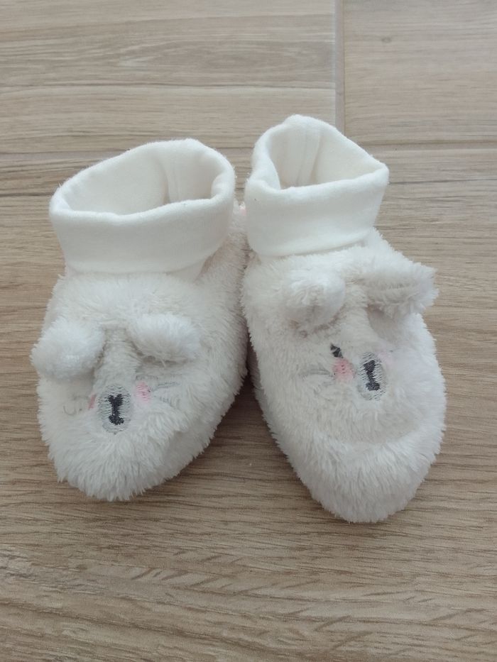 Paire de potons 0-3 mois, en pilou tout doux, comme neuf.