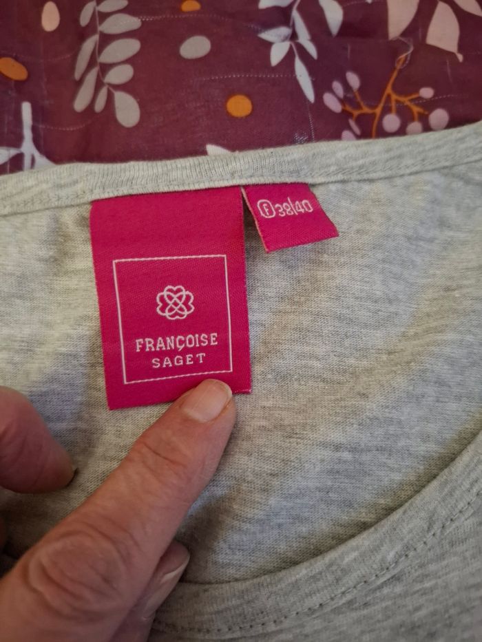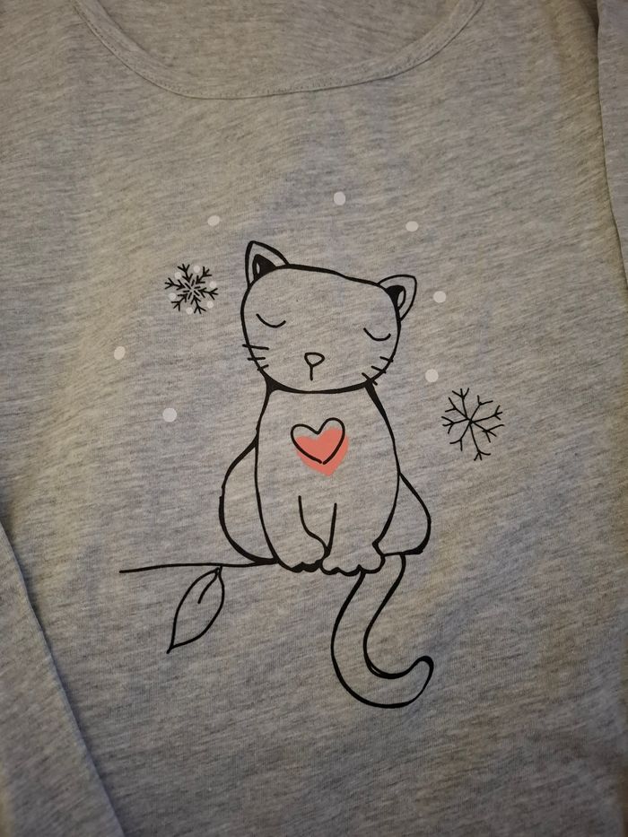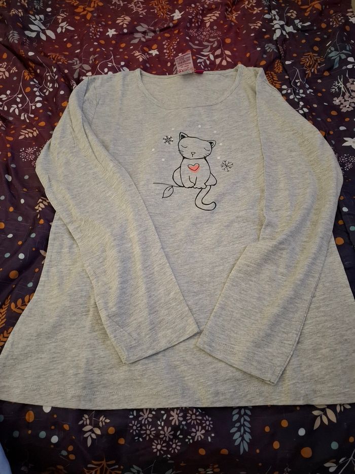 Bonjour 👋, pyjama Chat d’Amour 🐱 de "Françoise Saget" taille 38/40, couleur gris/bleu céladon. Haut col rond, imprimé devant, bas élastique à la taille. Coton très confortable et douce. Toute saison. Jamais porté, jamais lavée donc NEUF. Vendu dans son emballage 15€ (24€ dans le commerce)