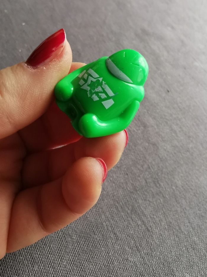 Osselet figurine verte, en bon état général, la peinture est partie partiellement, taille 3 cm, poids 2 g. #osselet #osseletvert #figurineverte