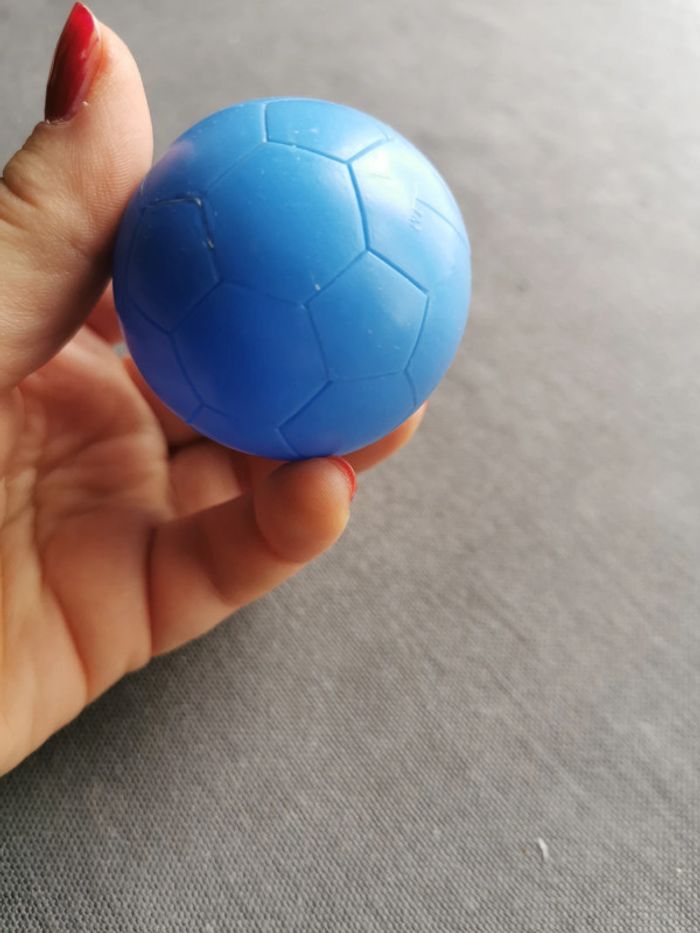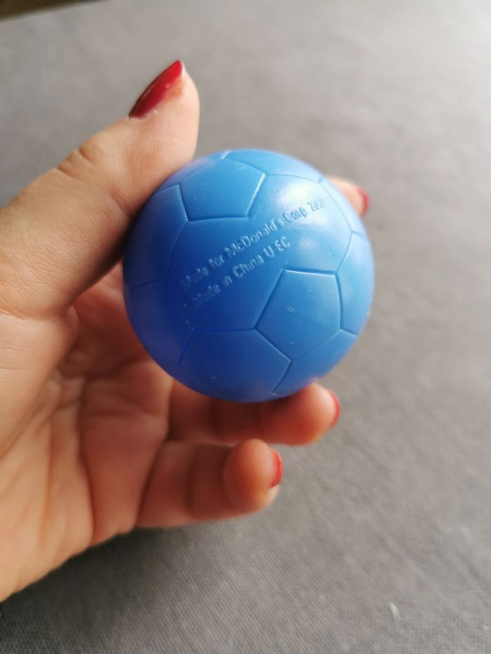 Balle foot bleue McDonalds 2007, avec le logo M, en bon état général. Balle en plastique, diamètre 4,5 cm, poids 15g. #balledefoot #ballebleue #ballemcdo