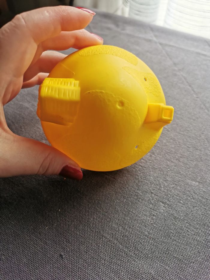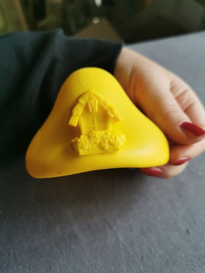 Toit de maison pour les Schtroumpfs, jouet. Toit jaune en plastique, en très bon état, Payo 2017 McDonald's. Hauteur 6 cm, diamètre 8,7 cm, poids 23g. #maison #toitdemaison #schtroumpfs #maisondesschtroumpfs #mcdonalds #jouetmaison