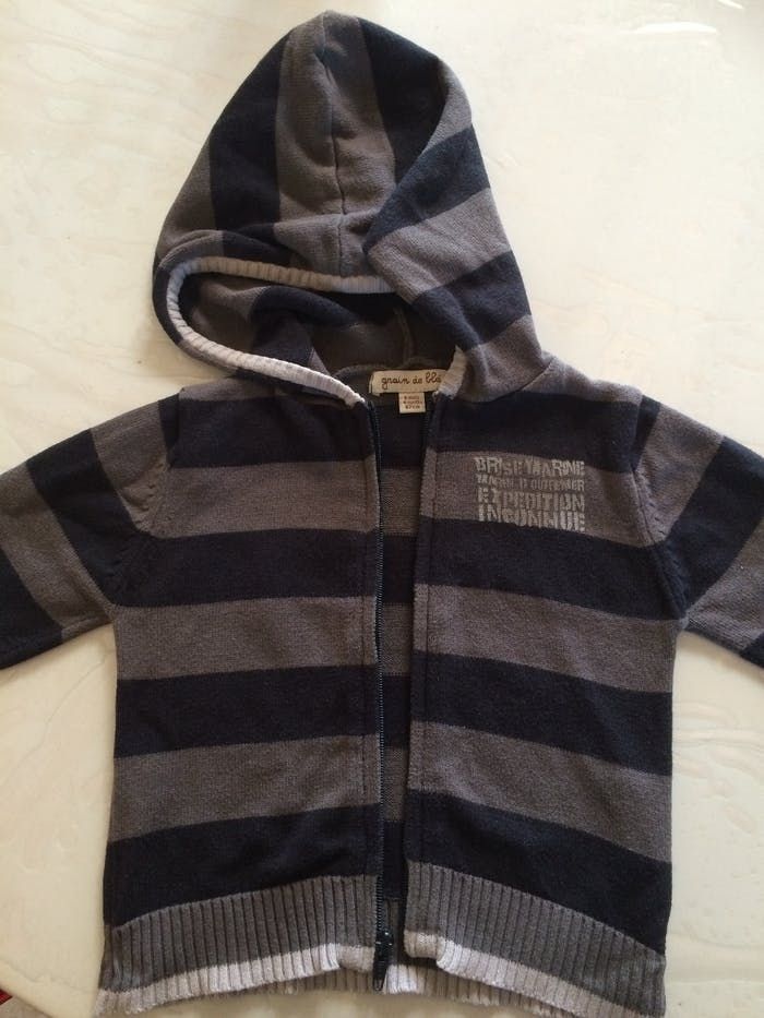 📌Si c'est votre première commande utiliser le code parrainage dans mon profil vous aurez une réduction 📌En bon etat, un peu detendu en bas, gilet a capuche zippé, 6mois, graine de blé #garcon6mois_mondressing11_bv