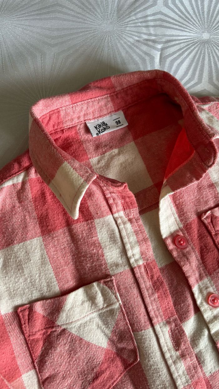 🚺 Chemisier chaud 🚺 🟪 Taille: 3 ans 🟪 Marque: Kiki & Koko 🟪 Couleurs: Rose et blanc à carreaux