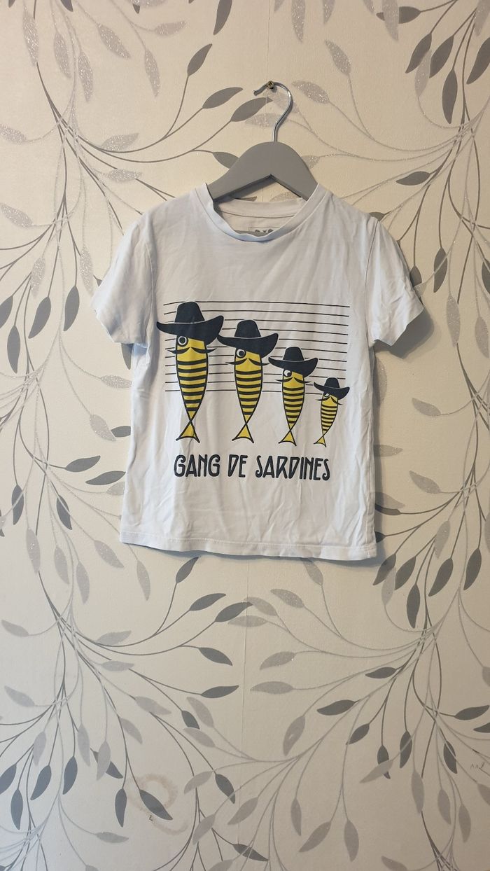 Tee-shirt manche courte blanc et jaune taille 5/6ans marque bande de sardines très bonne état