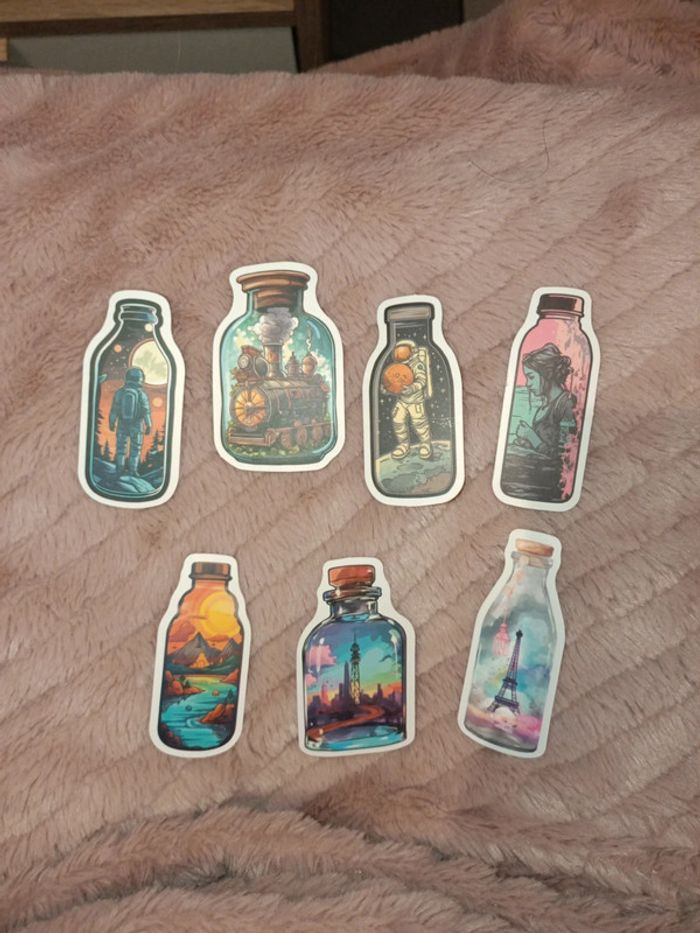 7 autocollants de fioles bouteilles bouchon liège - photo numéro 1