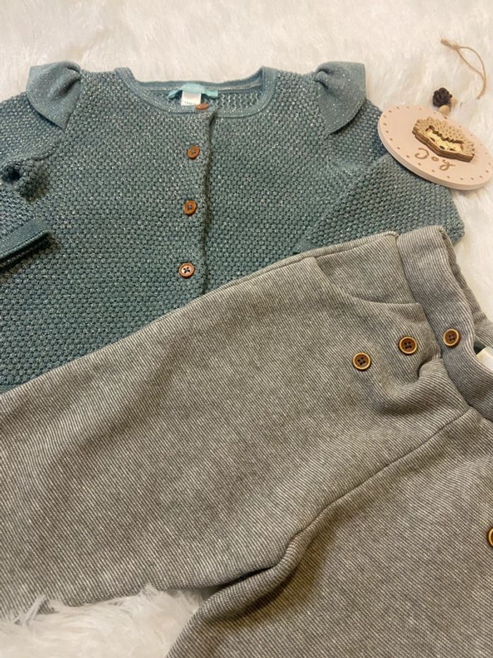 Description 🌸 : Adorable ensemble pour bébé, taille 18 mois. • Marque : Obaïbi • État : Très bon état, aucun défaut (ni tâche ni trou). • Couleur : bleu et gris. • Détails supplémentaires : ensemble gilet froufrou brillant et pantalon ceintré. N’hésitez pas à me contacter pour plus d’informations ou des photos supplémentaires ! ☀️