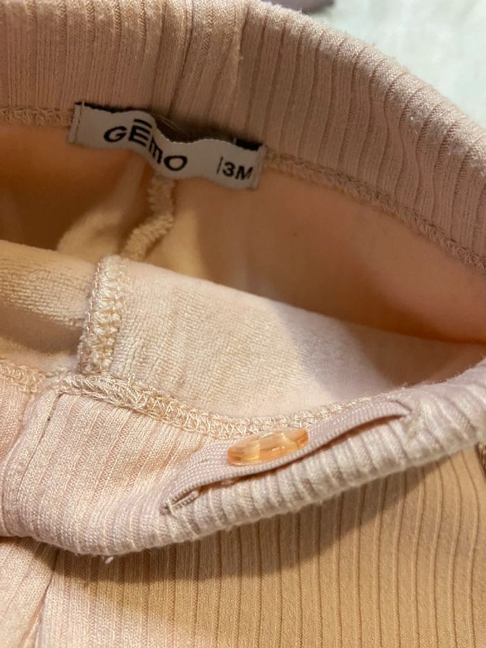Description 🌸 : Adorable ensemble pour bébé, taille 3 mois. • Marque : Pommette et Gémo • État : Très bon état, aucun défaut (ni tâche ni trou). • Couleur : violet et rose. • Détails supplémentaires : ensemble bodies manche longue avec col Claudine et leggings épais serre taille. N’hésitez pas à me contacter pour plus d’informations ou des photos supplémentaires ! ☀️