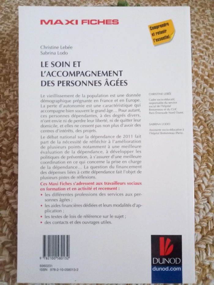 Maxi fiches Le soin et l'accompagnement des personnes âgées Éditions DUNOD Comprendre et retenir l'essentiel La Gazette santé sociale Christine Lebée et Sabrina Lodo 120 pages Parfait état #lily2905jeuxjouetslivresbd