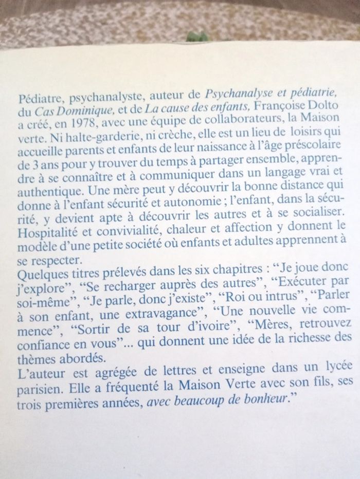Libres enfants de la Maison Verte Créée sur une idée de Françoise Dolto Jacqueline Sudaka-Benazeraf 123 pages Éditions Retz 1987 Couverture un peu abîmée (voir photos) mais intérieur en très bon état #lily2905jeuxjouetslivresbd