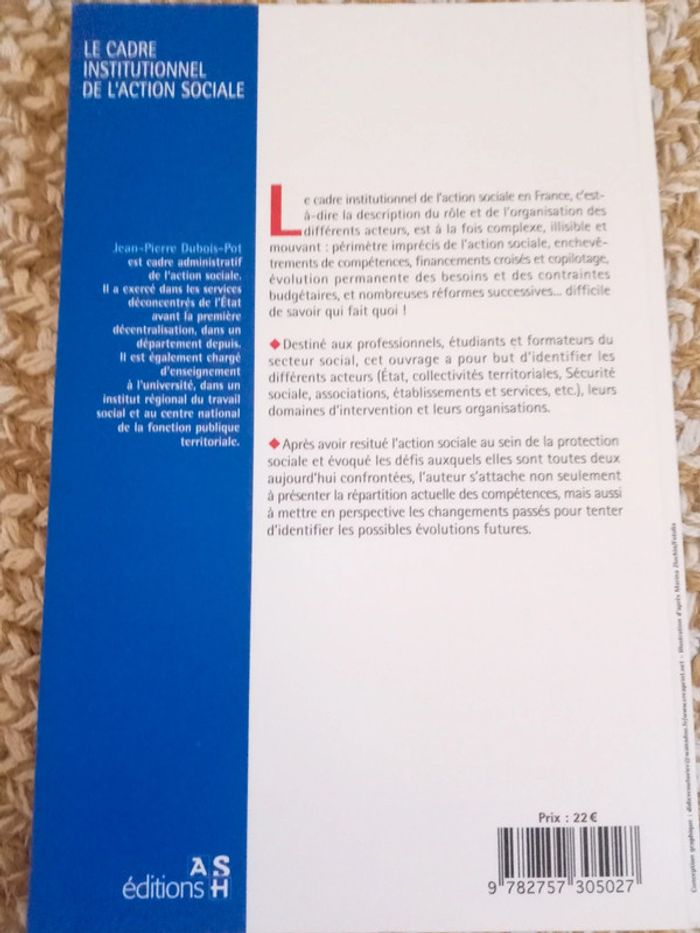 Le cadre institutionnel de l'action sociale ASH Professionnels Jean-Pierre Dubois-Pot 171 pages Neuf Professionnels, étudiants et formateurs du secteur social Collectivités territoriales, sécurité sociale, État, associations, établissements et services... #lily2905jeuxjouetslivresbd