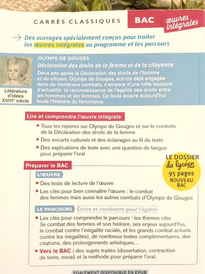 Déclaration des droits de la femme et de la citoyenne Écrire et combattre pour l'égalité Carrés classique Bac Éditions Nathan Olympe De Gouges Le dossier du lycéen 95 pages nouveau bac #lily2905loisirsjeuxjouetslivresBD