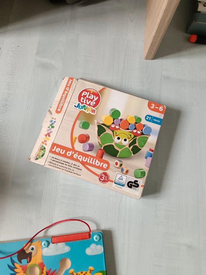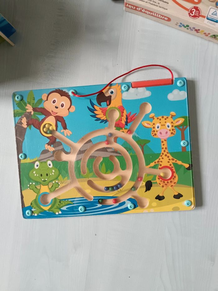 Vend gros lot manipulation comprenant Pêche à à ligne avec tt ses éléments aimantés Jeu d'enfilement idéal dextérité Personnages articulés avec renard à tirer Jeu avec billes aimantées pour trier et manipuler Jeu d'équilibre tortue, dans son emballage d'origine 5 puzzle en bois dont 3 animaux 1 pat patrouille et 1 poule janod Très bon état dans l'ensemble