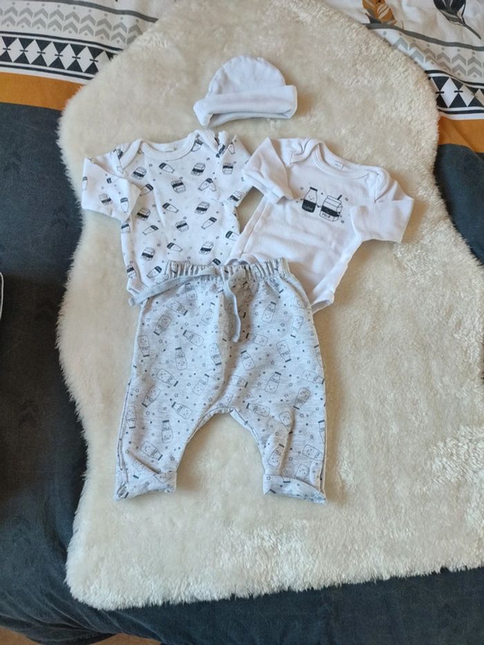 Joli ensemble 2 bodies un pantalon un bonnet en cadeau