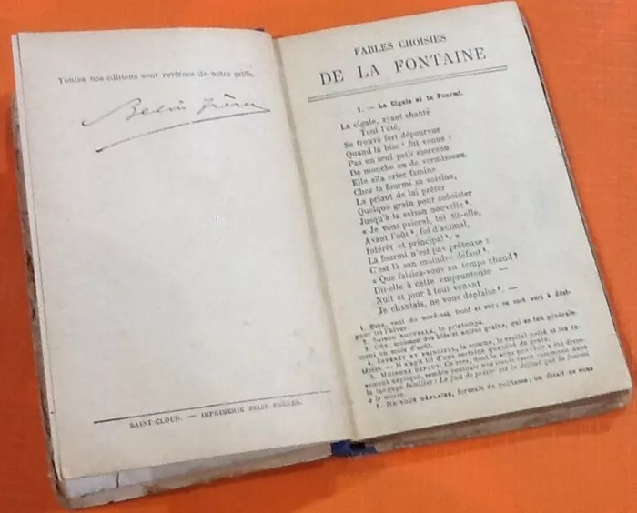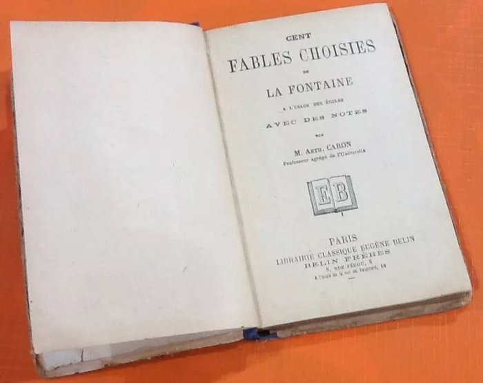 (article vendu en l' état, état d' usage, voir toutes les photos) Cent fables choisies de La Fontaine A l' usage des écoles avec des notes Par Arth Caron (1918) 140 pages Librairie Classique Eugène Belin Frères Paris (145x95x10)mm Poids : 85grs