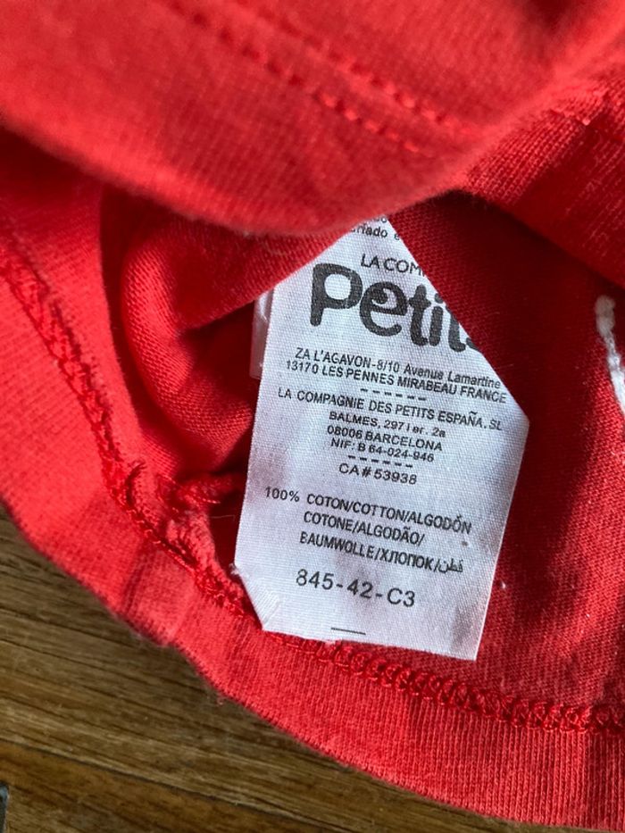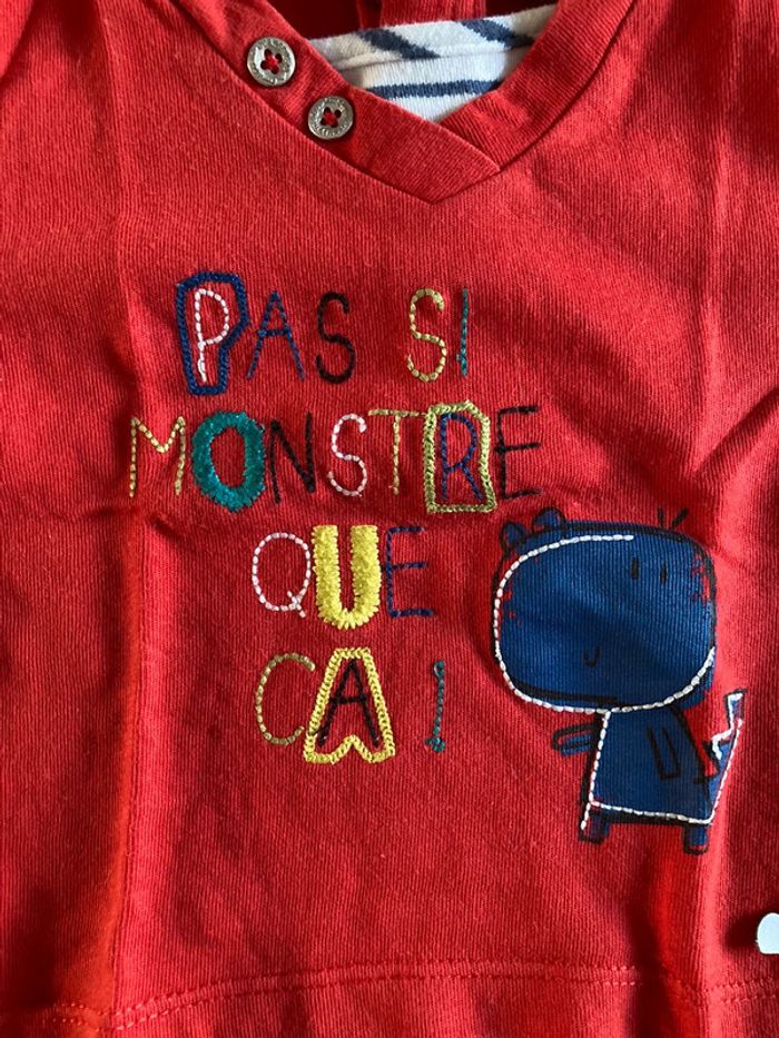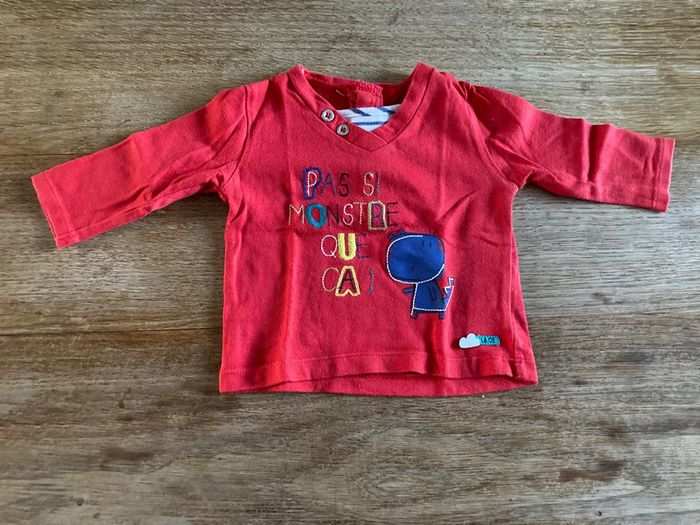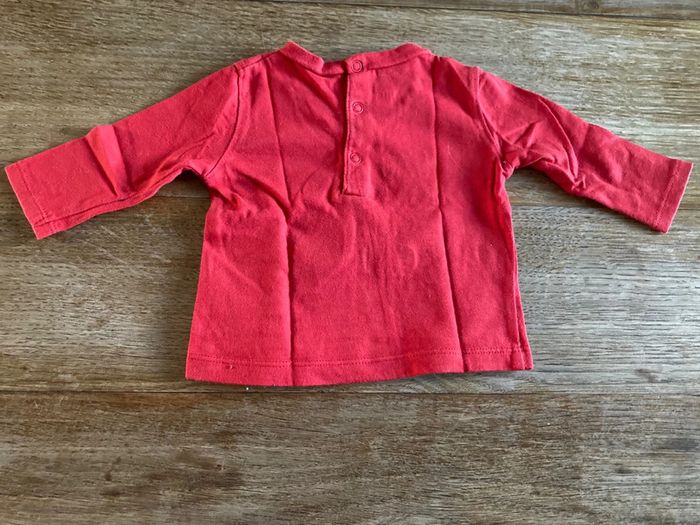 Tee-shirt 3 mois La Compagnie des Petits manches longues rouge, 100% coton, pressions au dos