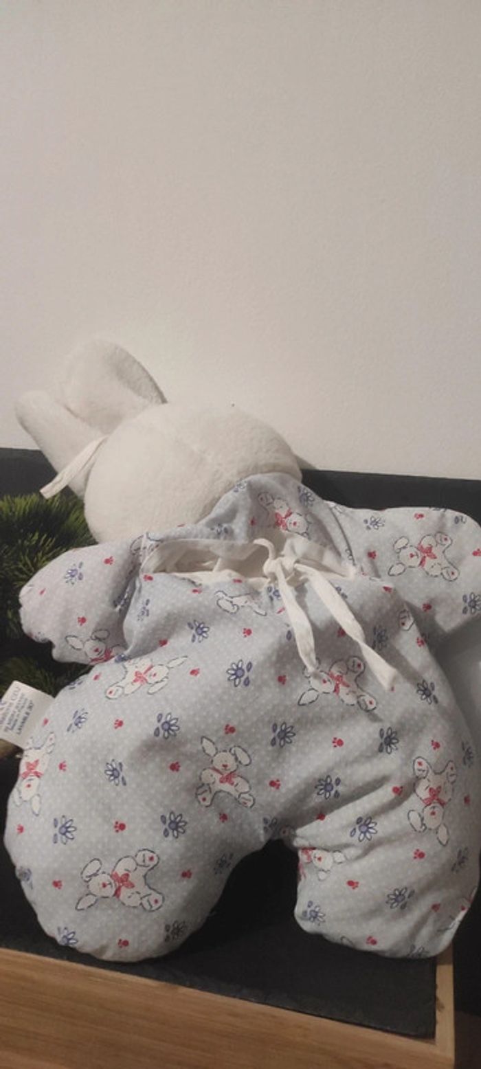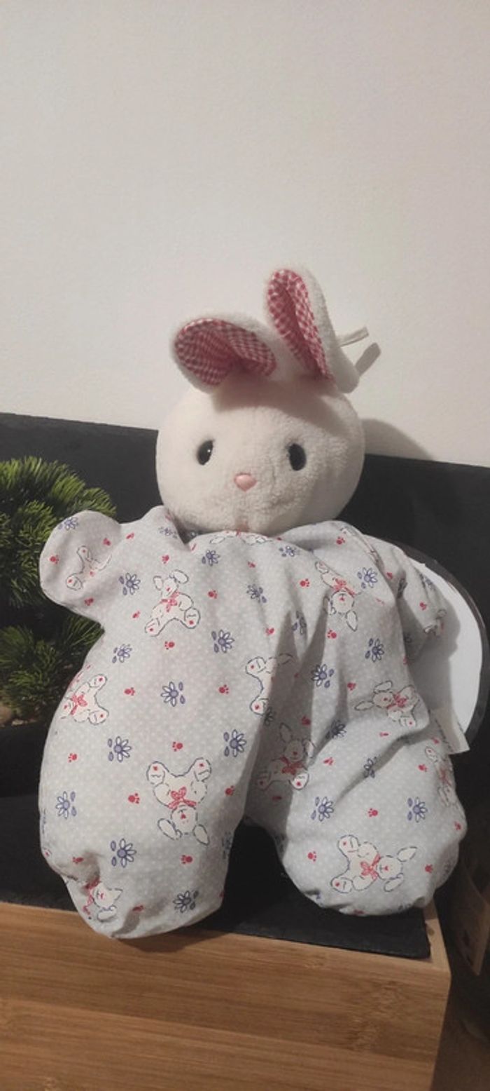Vintage doudou peluche Lapin blanc bleu Range Pyjama Petit Ours Cjd Rouge Fleur