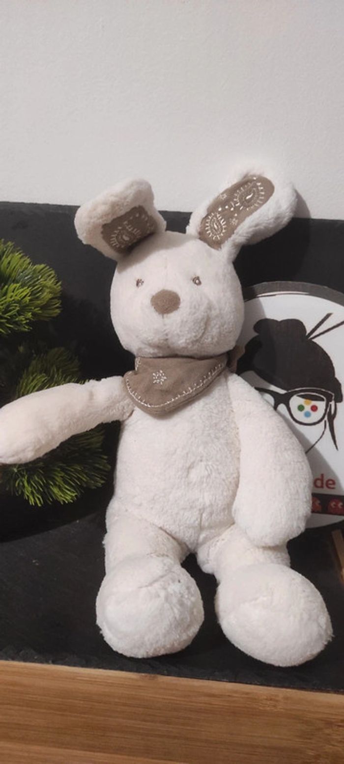 Nicotoy Mon ami Teddy Peluche lapin blanc beige bandana marron soleil symbole - photo numéro 1