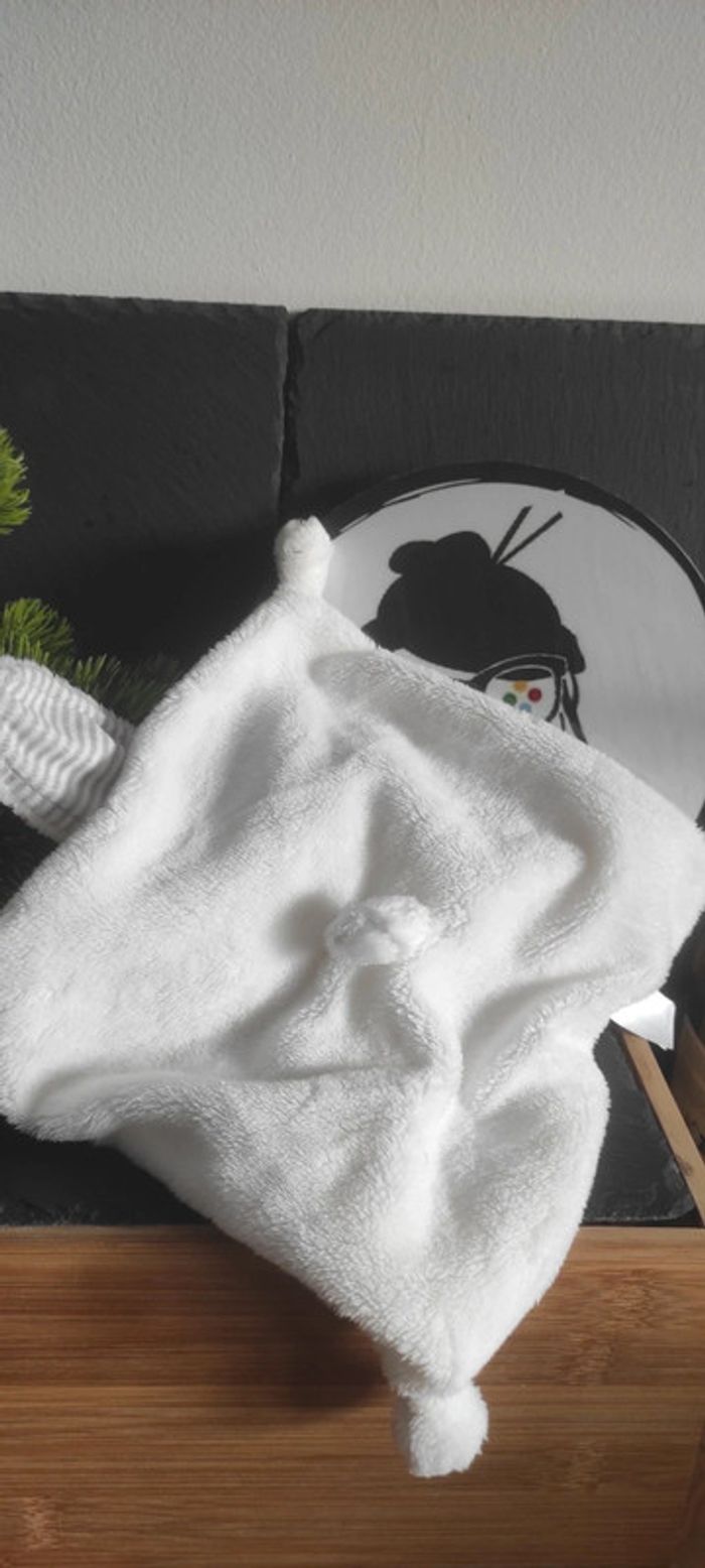 Doudou plat lapin blanc rayé gris rayure bb kiabi simba toys Bandana Carré Noeud - photo numéro 1