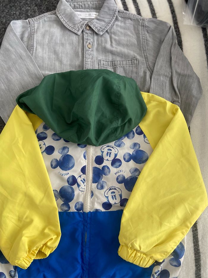 lot comprenant un petit blouson Zara, une chemise, jeans noire Zara, la chemise n’a jamais été portée juste lave 3,4 ans