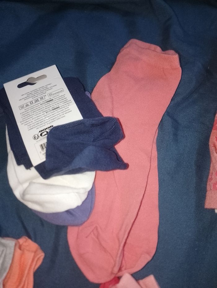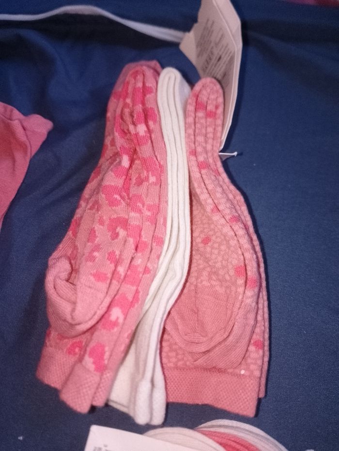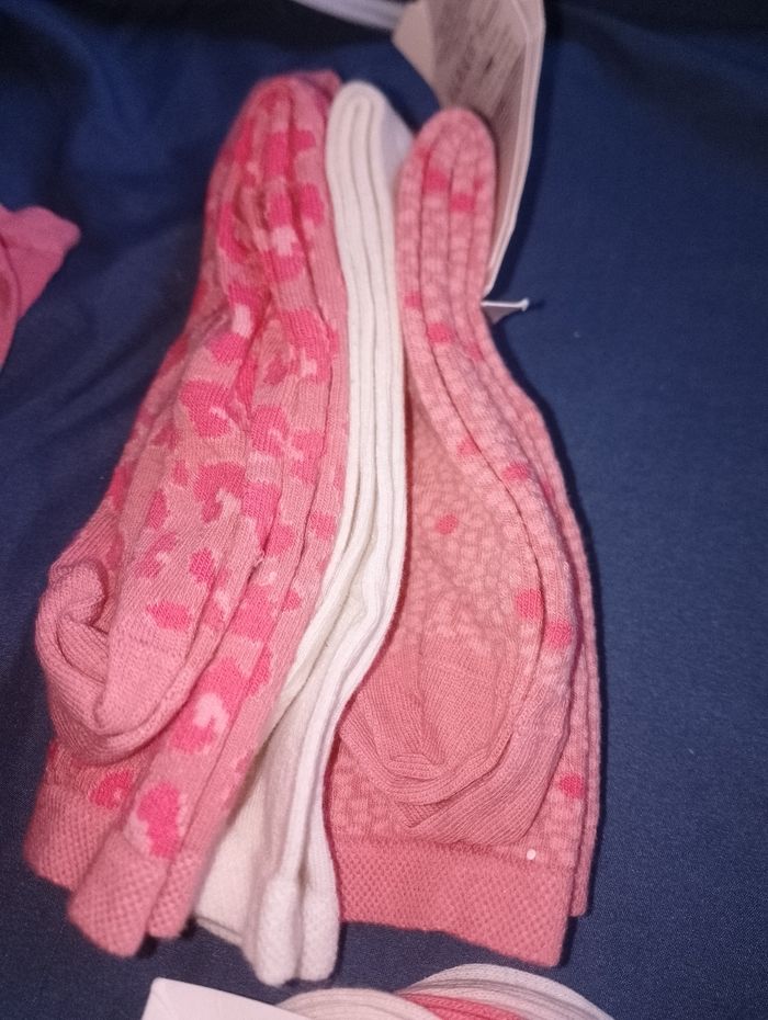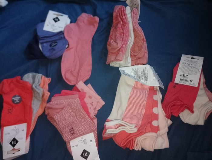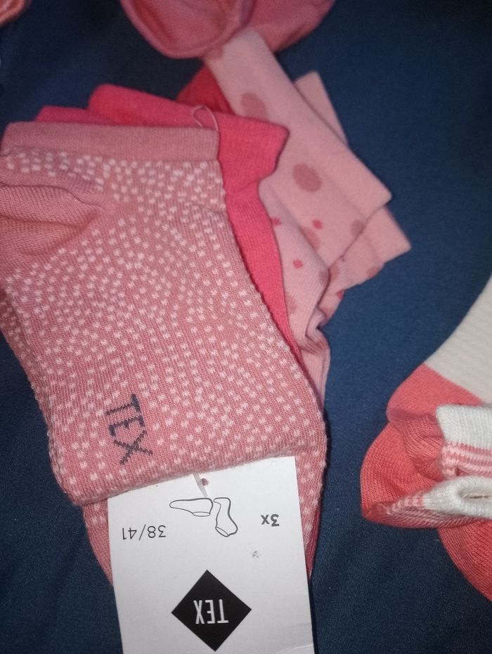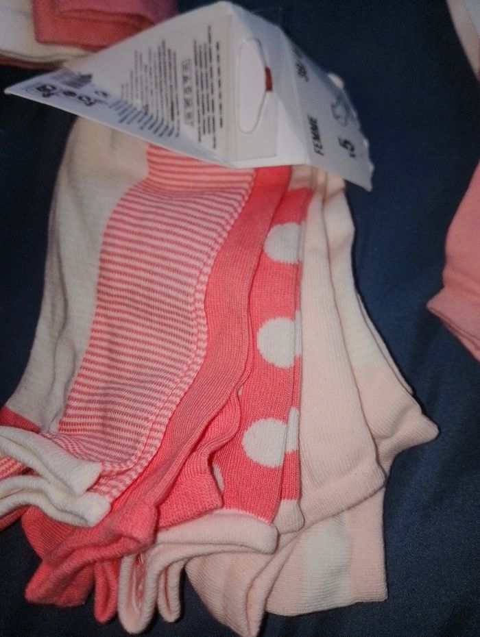 Paire de chaussettes neuve 38 41 tex Différents prix 1 lot de 3 haute rose et écru 8 € pièce 1 lot de 4 mi haute violet rose et blanche 8euro 1 lot de 5 courte rose et écru 10€ pièce 1 lot de 3 courte rose et beige 6€ pièce 1 lot de 3 rose 6€ pièce 1 lot de 3 rose et grise 6€ pièce