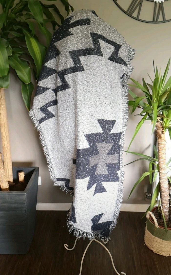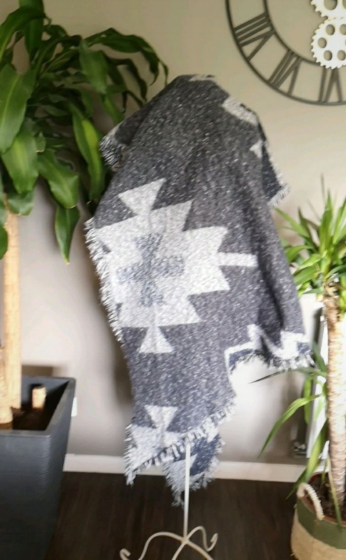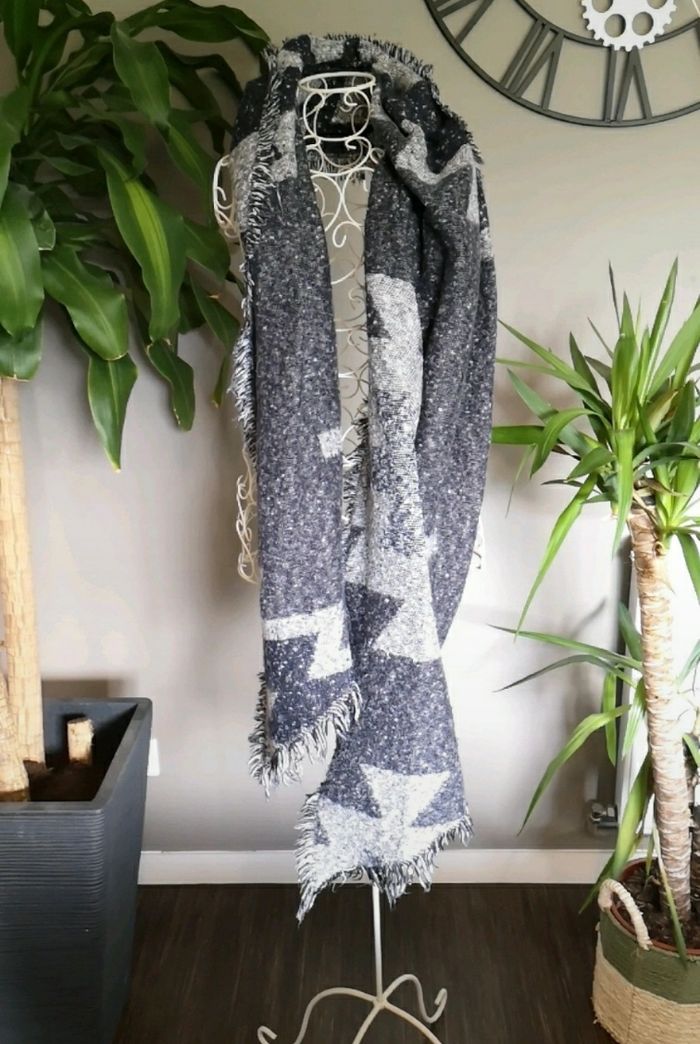 Grosse écharpe épaisse et douce Un côté grise, l autre côté bleu marine, comporte des motifs En parfait état