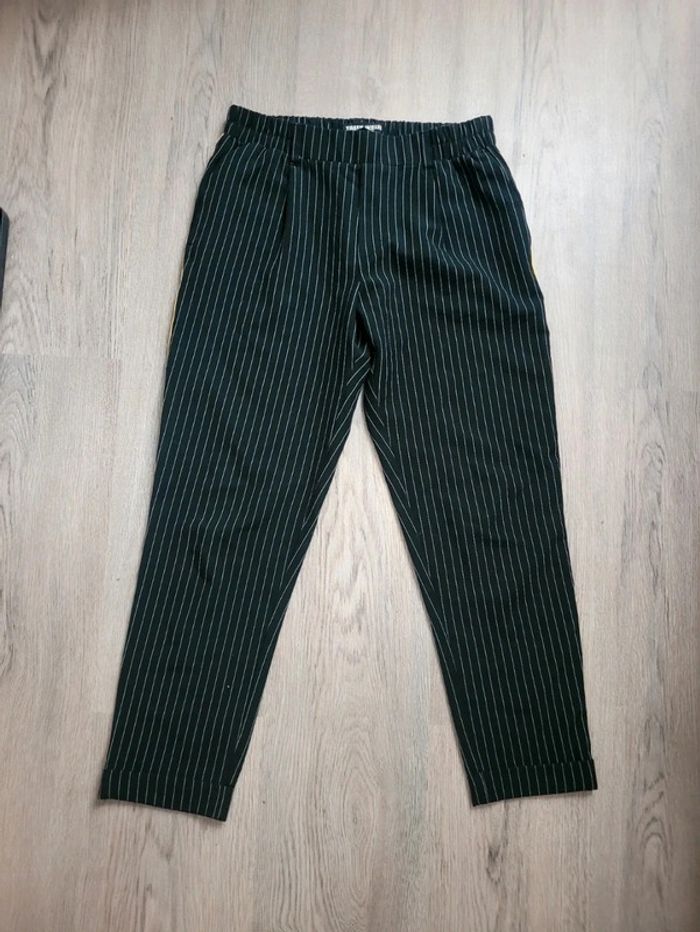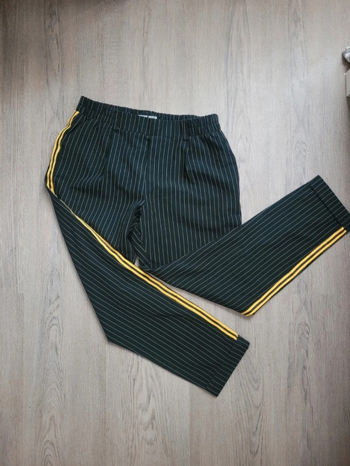 Neuf jamais mis Pantalon chino à rayures coupe droite à bande jaune sur les côtés S
