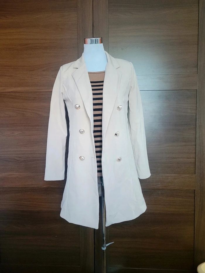 Blazer long beige Bouton "royal" doré Très bon état à peine mis Tracage des poches Sans poche Achat dans une Boutique sur Paris