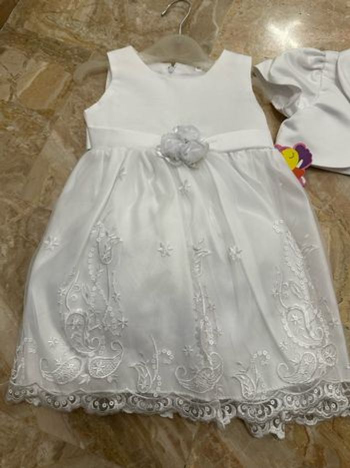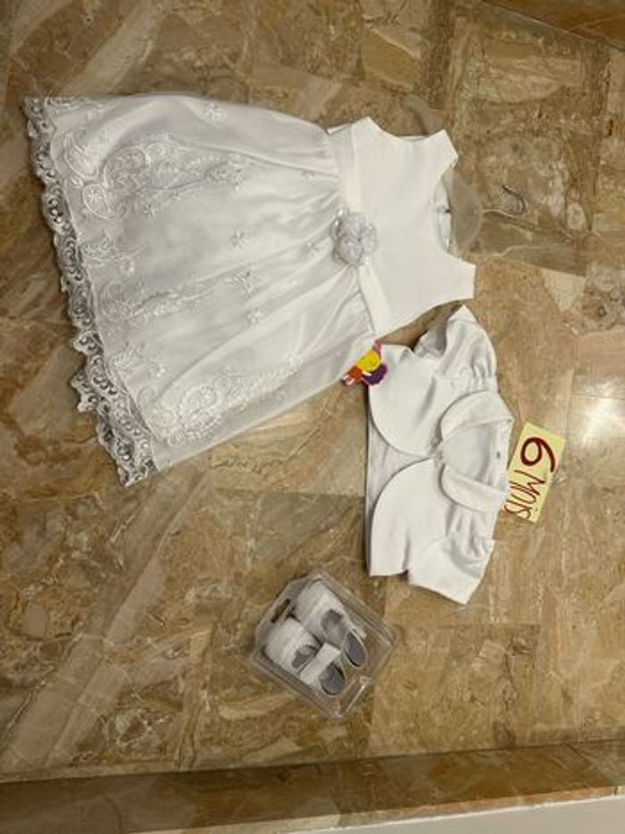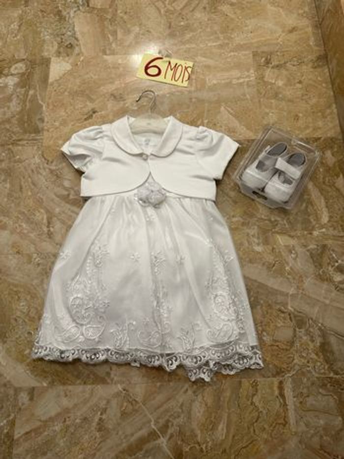 Cérémonie mariage baptême blanche avec dentelle Avec boléro et paire de chaussures Tulle pour du volume #virginielp1703fille6mois