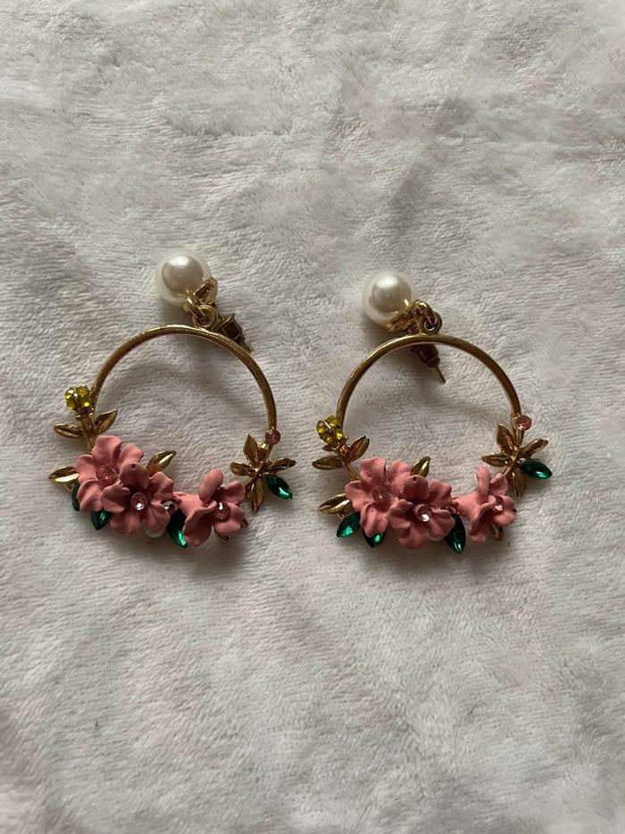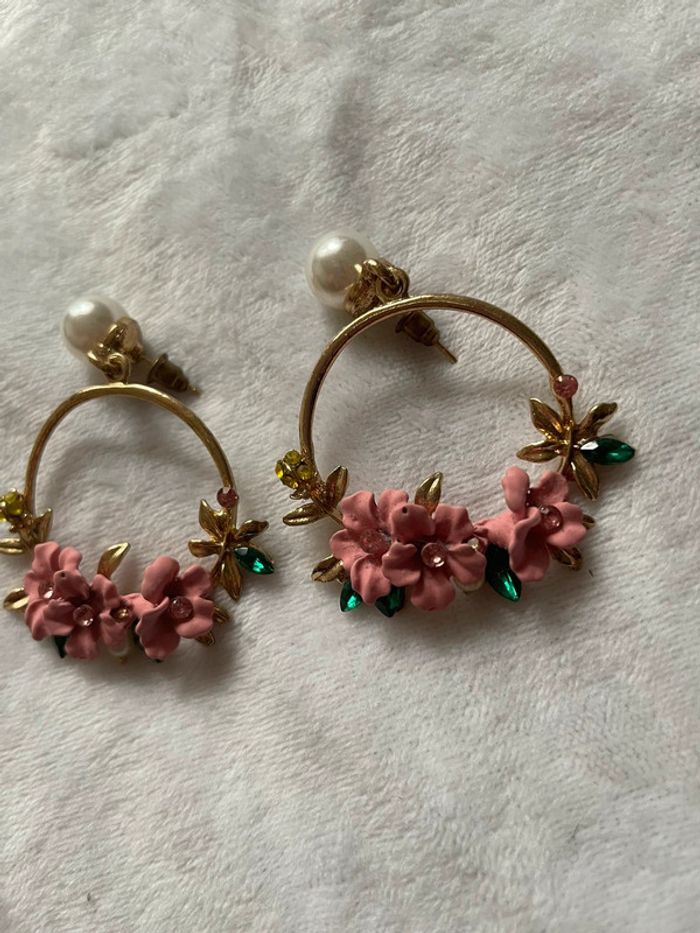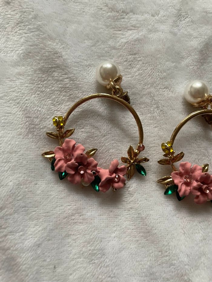 Boucles d’oreilles fleuries avec perles - photo numéro 3