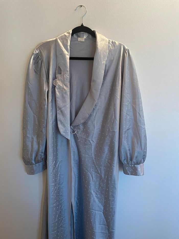 Chemise robe de nuit à pois bleu broderie - photo numéro 1