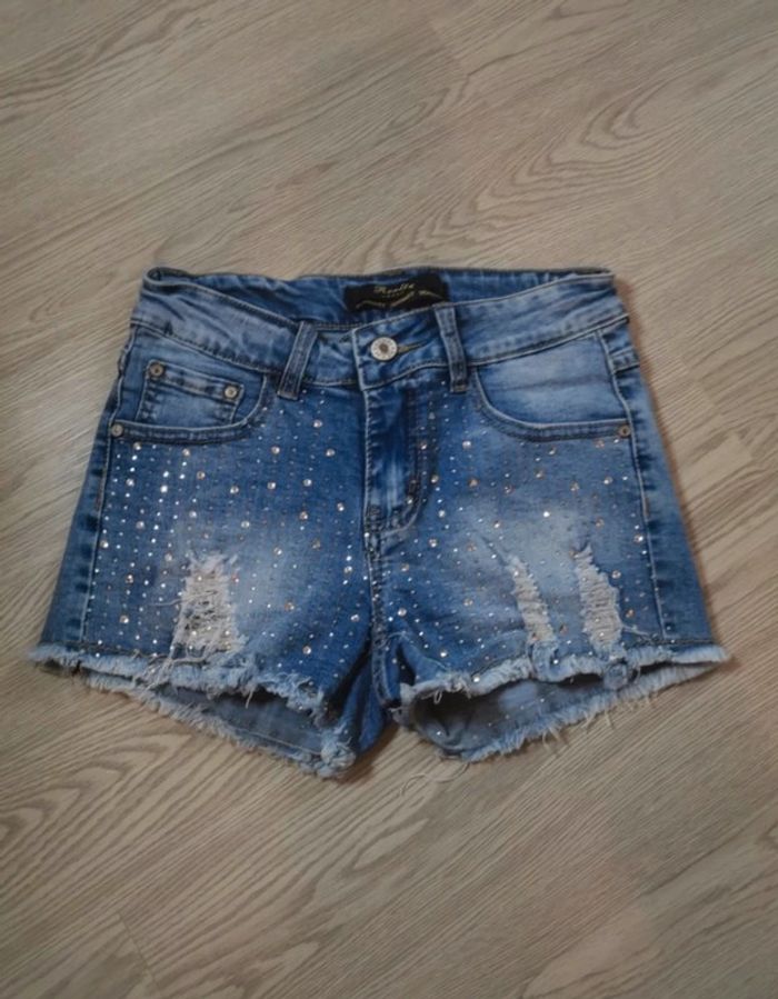 Short en jean taille haute strass effet destroy 🦋 - photo numéro 1