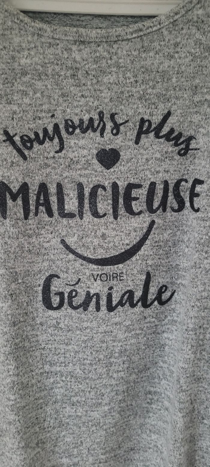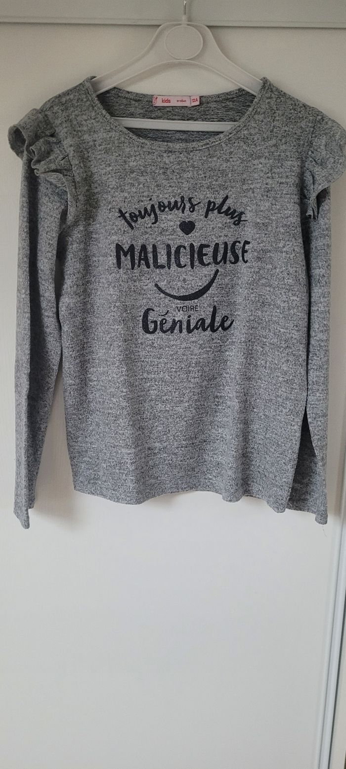 Pull gris chiné en très bon état. Petit volansur les épaules.